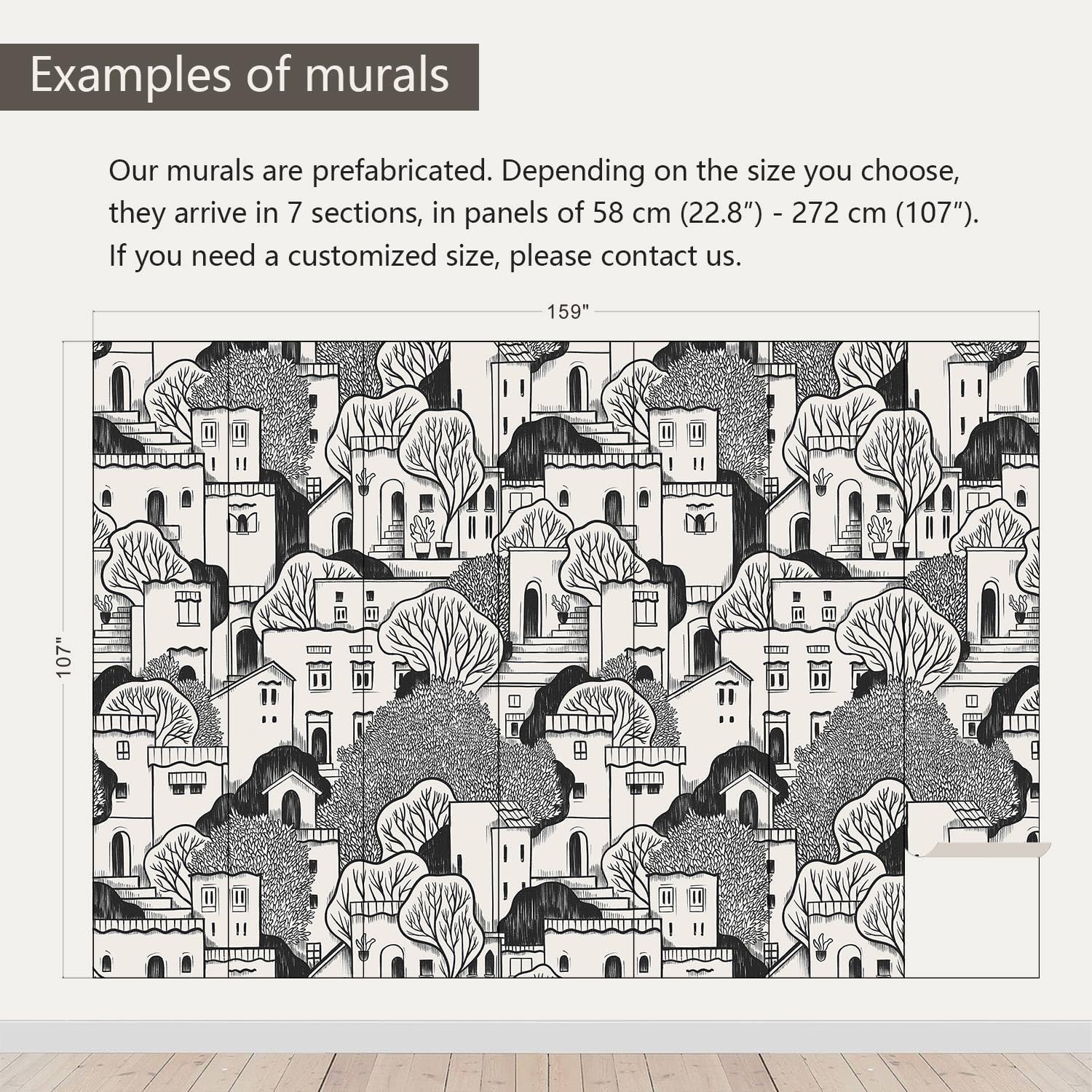 - Size note: Mural measures 159"W x 107"H and is divided into 7 sections, each section is labeled with a number underneath, eliminating the need to overlap patterns when installing.