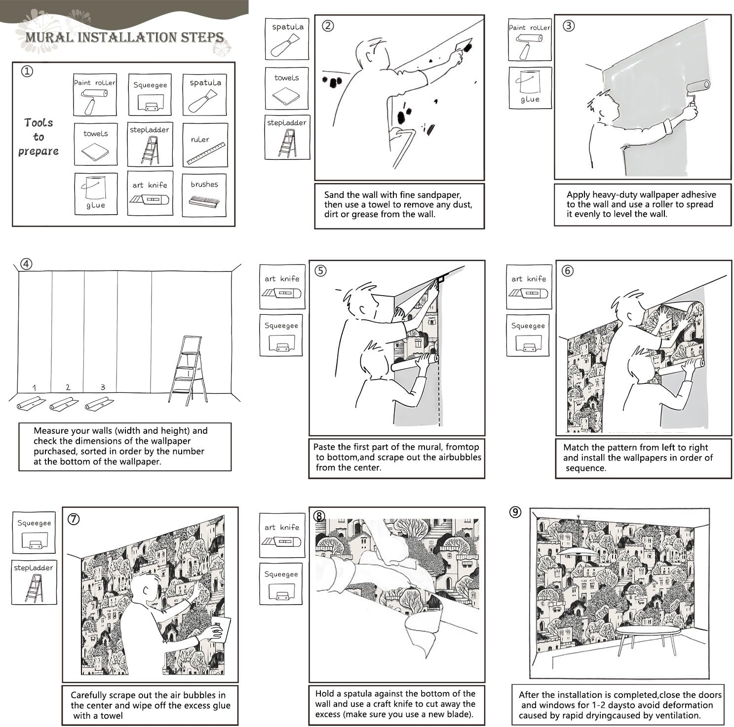 - Tips: Mural can not be peeled and pasted, you need to buy a heavy duty wallpaper glue