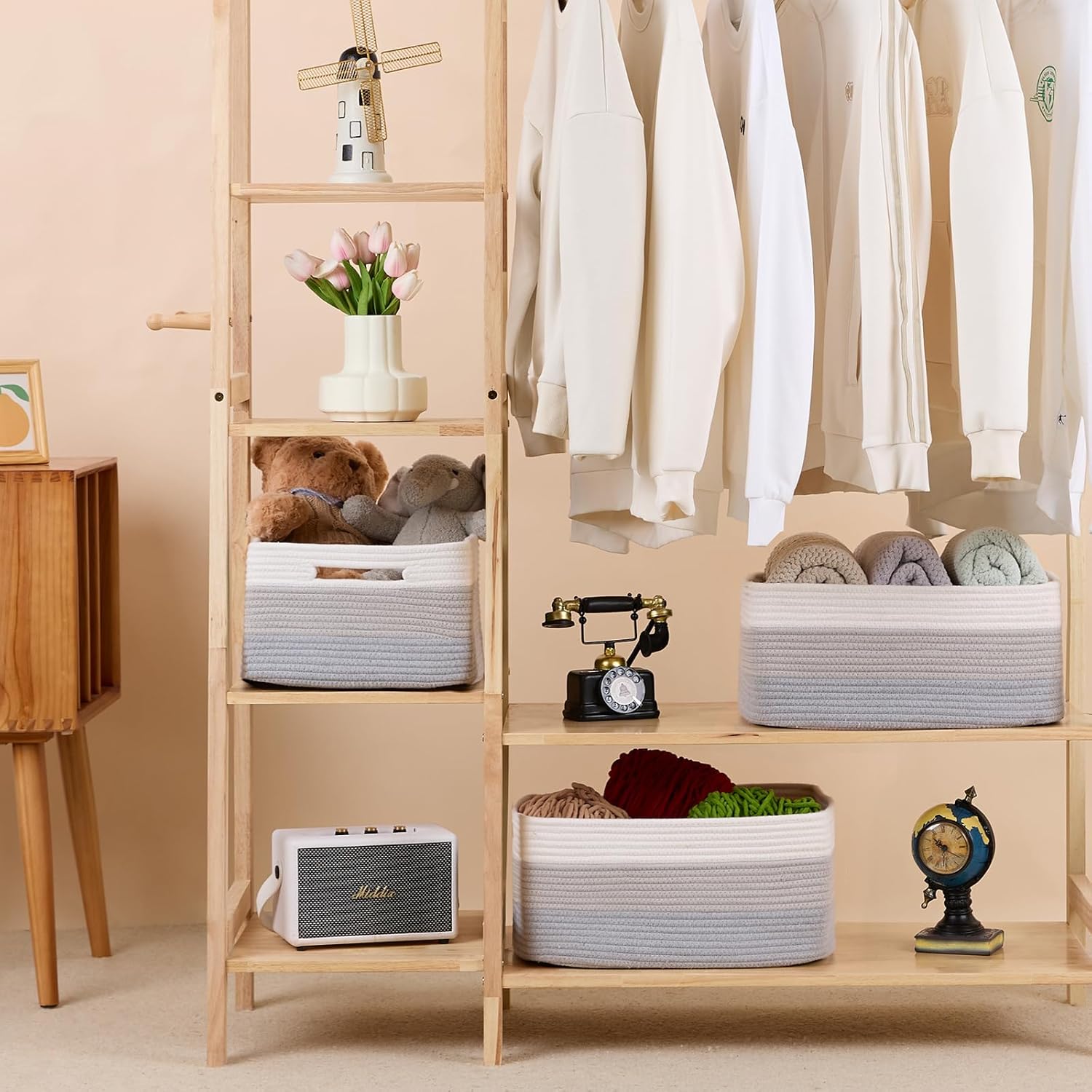 - [ Stylish Design ]: With a modern minimalist design, our woven rope baskets are a chic alternative to traditional rattan. They’re perfect for closets, changing table organizer, and cube shelves, adding warmth and texture to any room while tackling home clutter