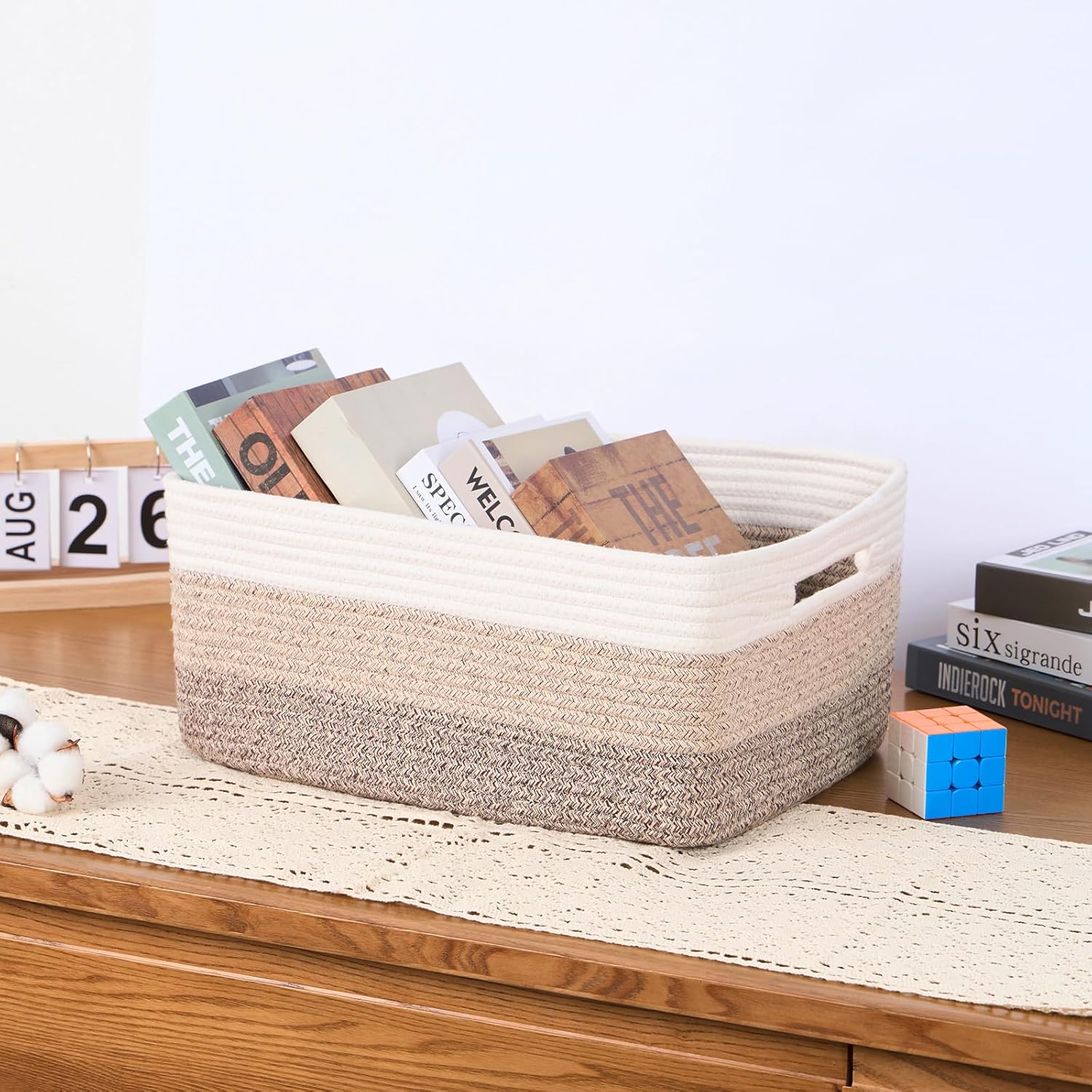 - [ Stylish Design ]: With a modern minimalist design, our woven rope baskets are a chic alternative to traditional rattan. They’re perfect for closets, changing table organizer, and cube shelves, adding warmth and texture to any room while tackling home clutter