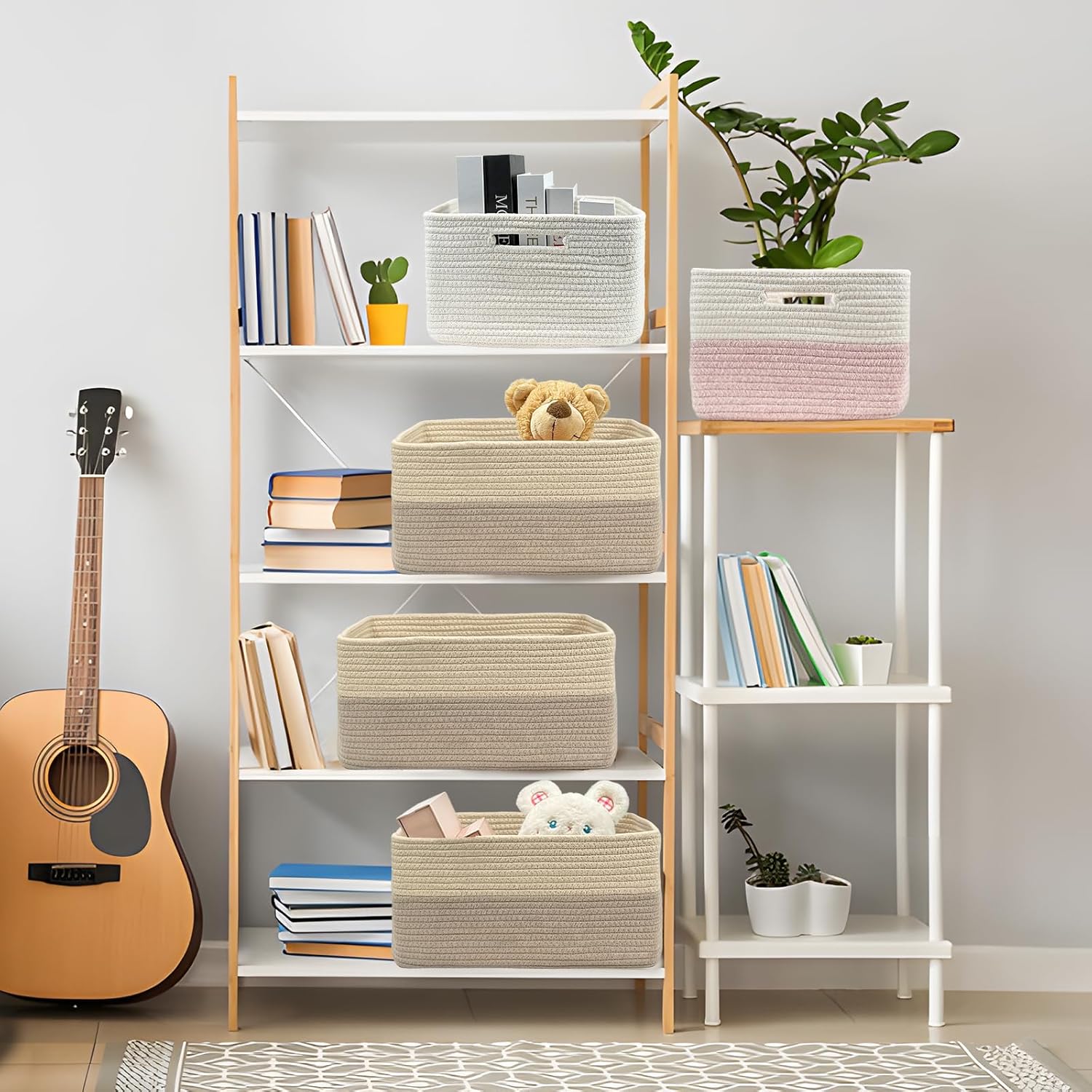 - Chic & Textured Decor:Modern square shape & natural woven texture elevate any space. Warm, minimalist style suits farmhouse to contemporary decor. Use as decorative storage baskets or standalone accents beyond plastic bins