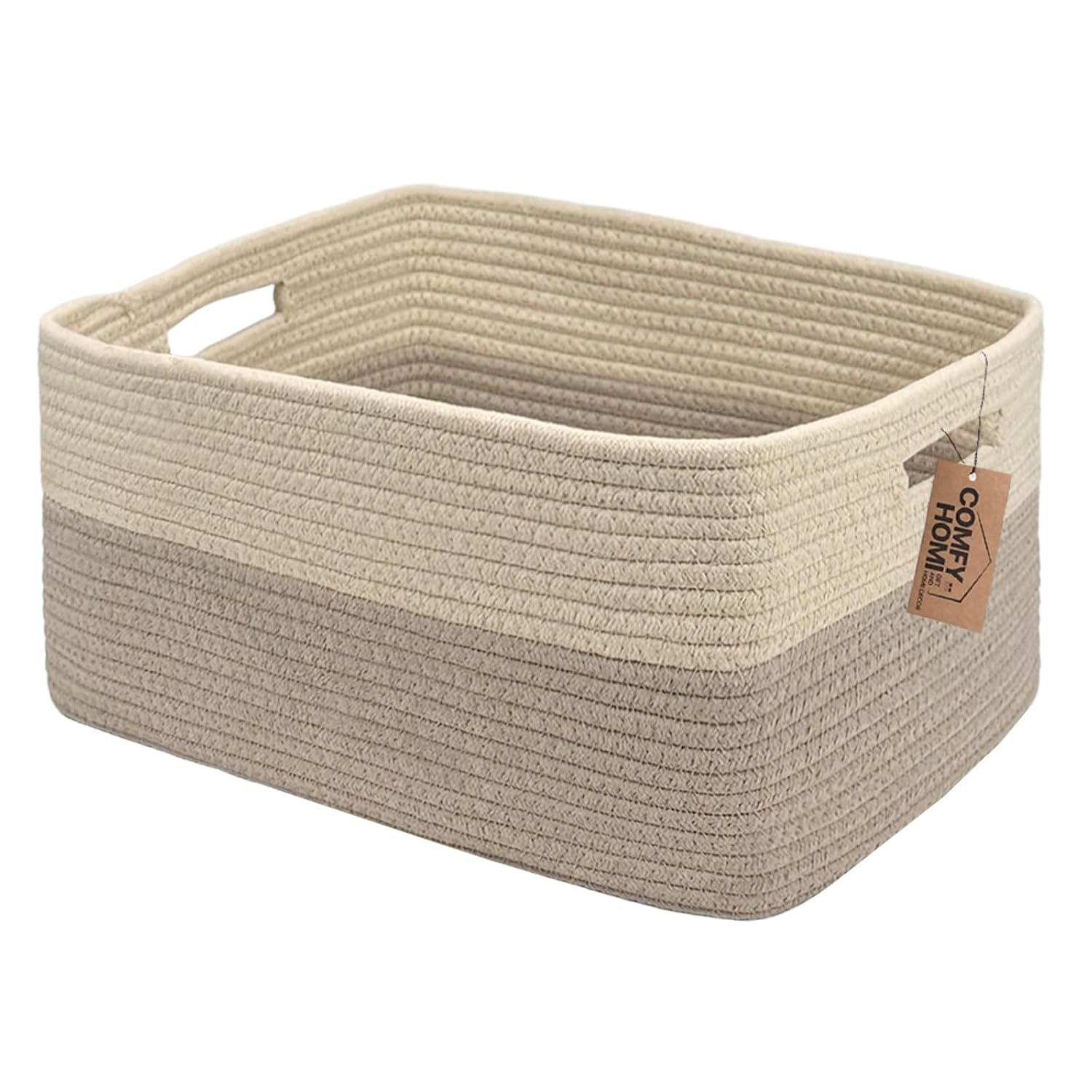 COMFY-HOMI Cotton Rope Woven Basket with Handles for Shelves,Toys,Book, Cloth Storage Baskets for Organizing-17" x 13" x 7.5" Toy Decorative Organizer for Living Room, Bathroom (Beige brown)