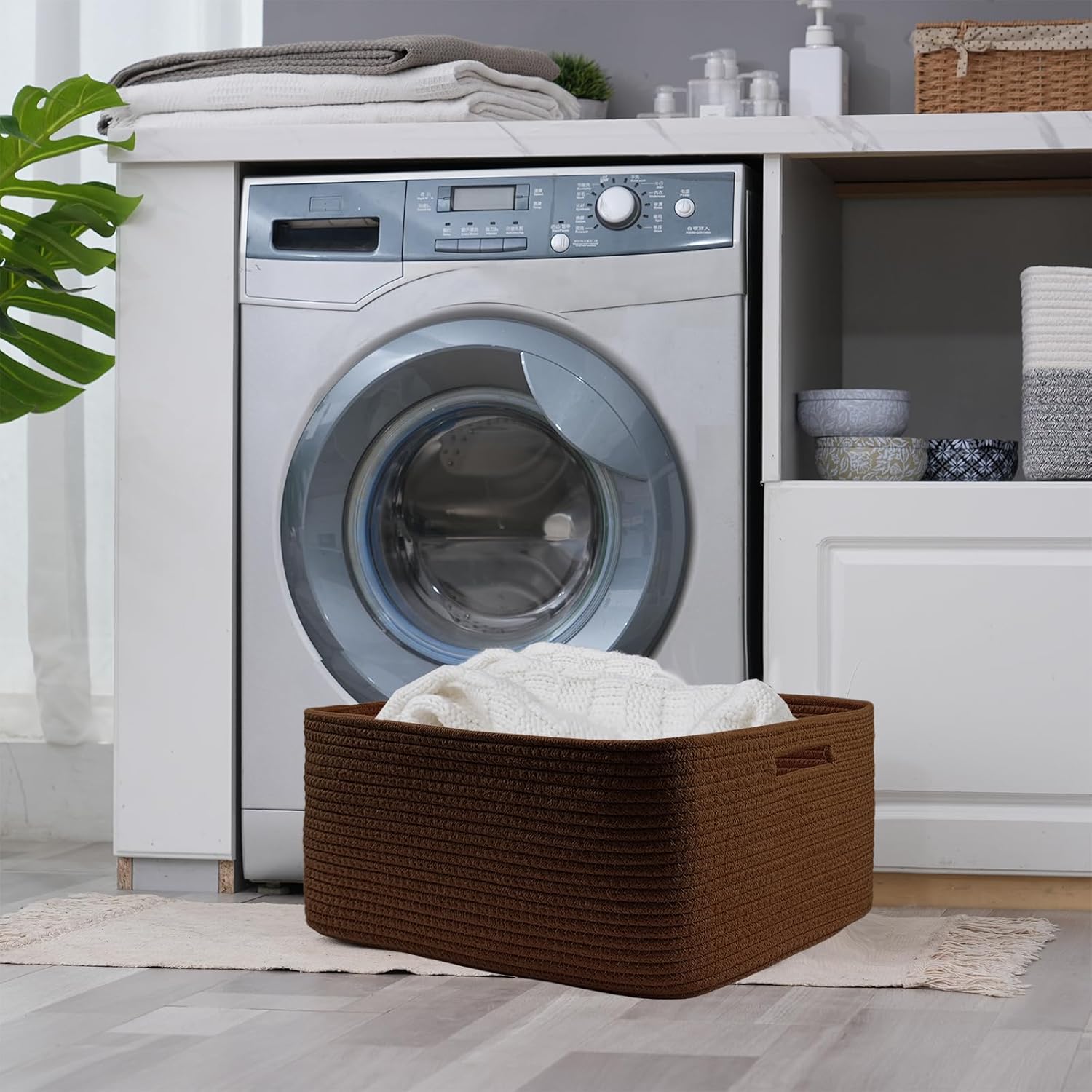 COMFY-HOMI Cotton Rope Woven Basket with Handles for Shelves,Toys,Book, Cloth Storage Baskets for Organizing-17" x 13" x 7.5" Toy Decorative Organizer for Living Room, Bathroom (dark brown)