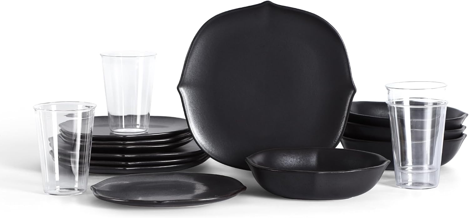 Stone Lain Baskerville 32-Piece Dinnerware Set Stoneware, Borosilicate Glass, Black