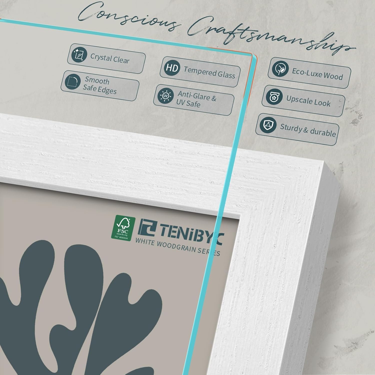 - Timeless Elegance: Experience the serene beauty of our white wood grain frame. Expertly crafted by TENIBYC's dedicated designers, it blends seamlessly with any decor, adding a touch of timeless charm to your space.
