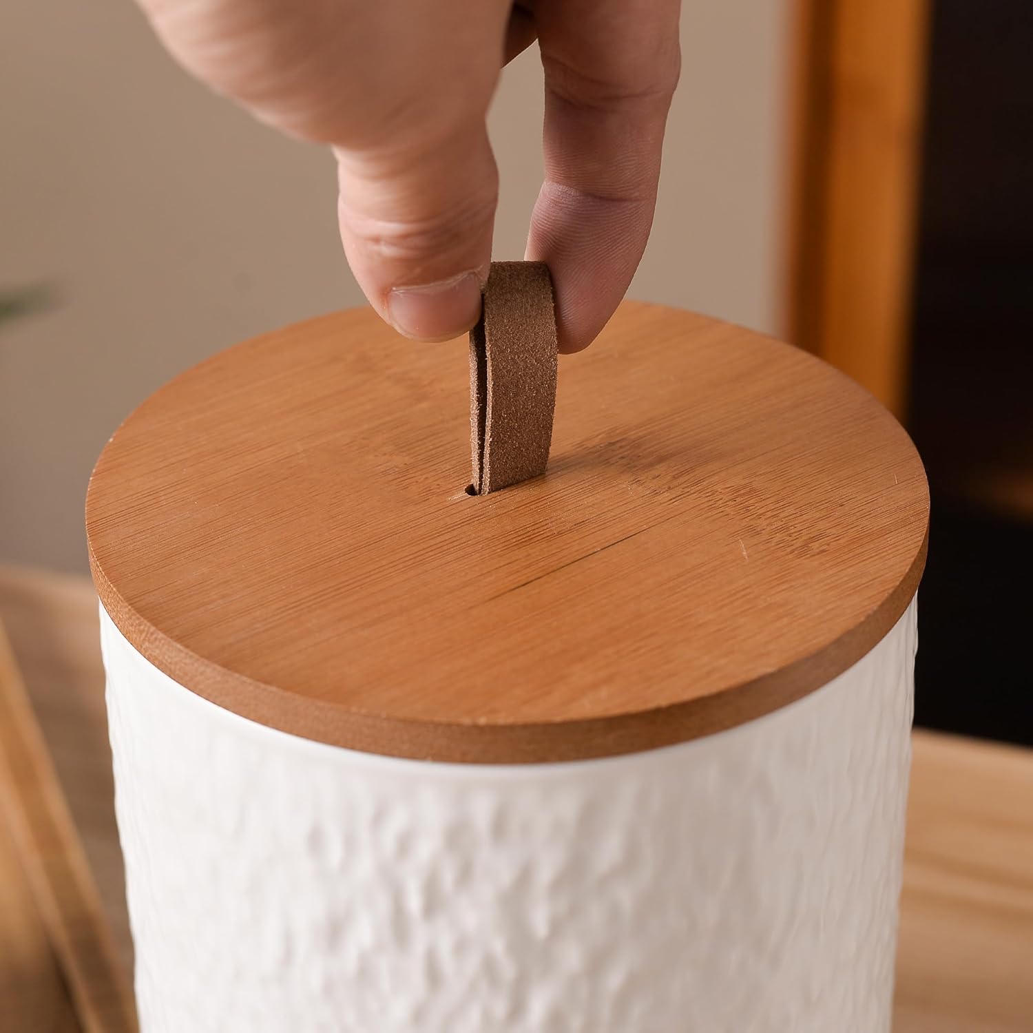 - Sleek & Rustic Stone-Like Texture - With a stone-like finish, these canisters bring a rustic yet modern aesthetic to your kitchen. The white color contrasts beautifully with the bamboo lids, creating a stylish and functional piece for your home.