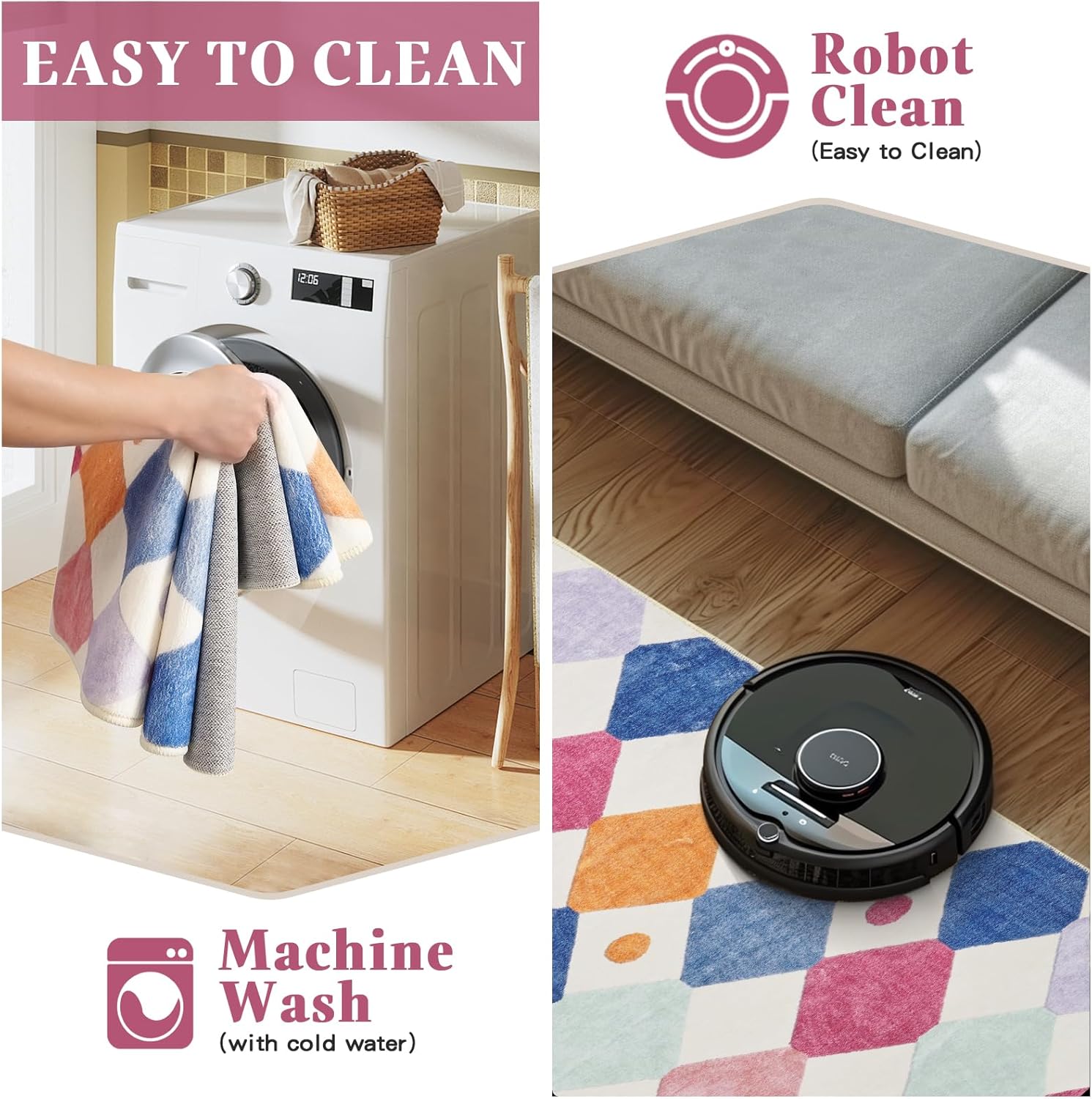- Machine Washable: Designed with convenience in mind, our bedroom rug is machine washable, allowing for easy cleaning and maintenance. Also suitable for daily cleaning with a vacuum cleaner, broom, or mop. Easy to keep a new looking
