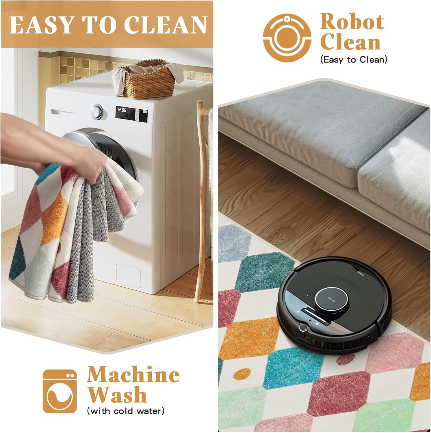 - Warm Vintage Colorful Design: Adorned with delightful diamond lattice splicing pattern against a soft cream bottom, this rug adds a playful charm to children's rooms and infuses vitality into adult spaces
