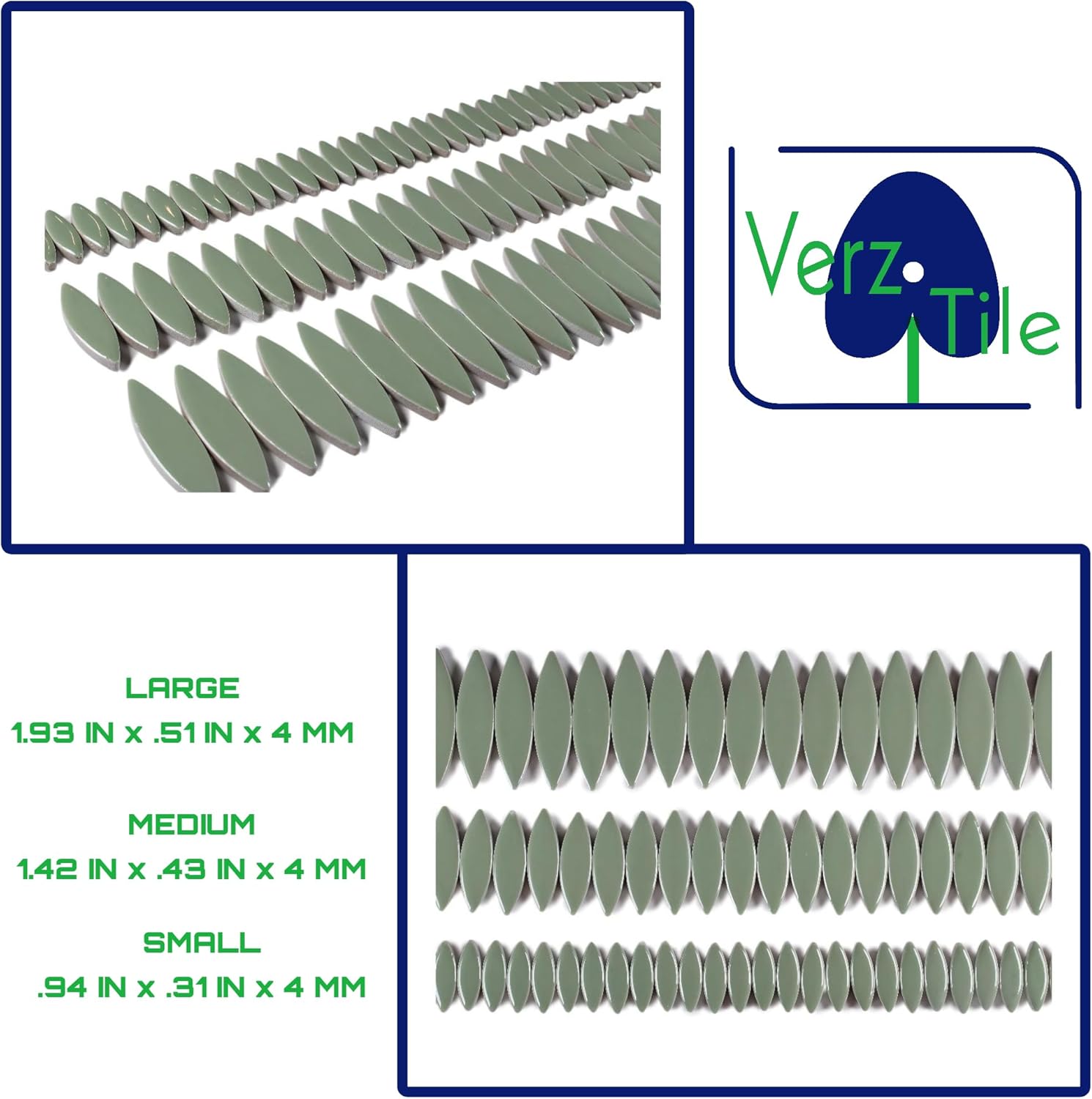 VerzTile Mosaic Tiles for Crafts - Petal Shaped Ceramic Tile Craft Hobbies & Art Projects 39 Color Options Endless Creativity DIY Design (Mossy Light Green)