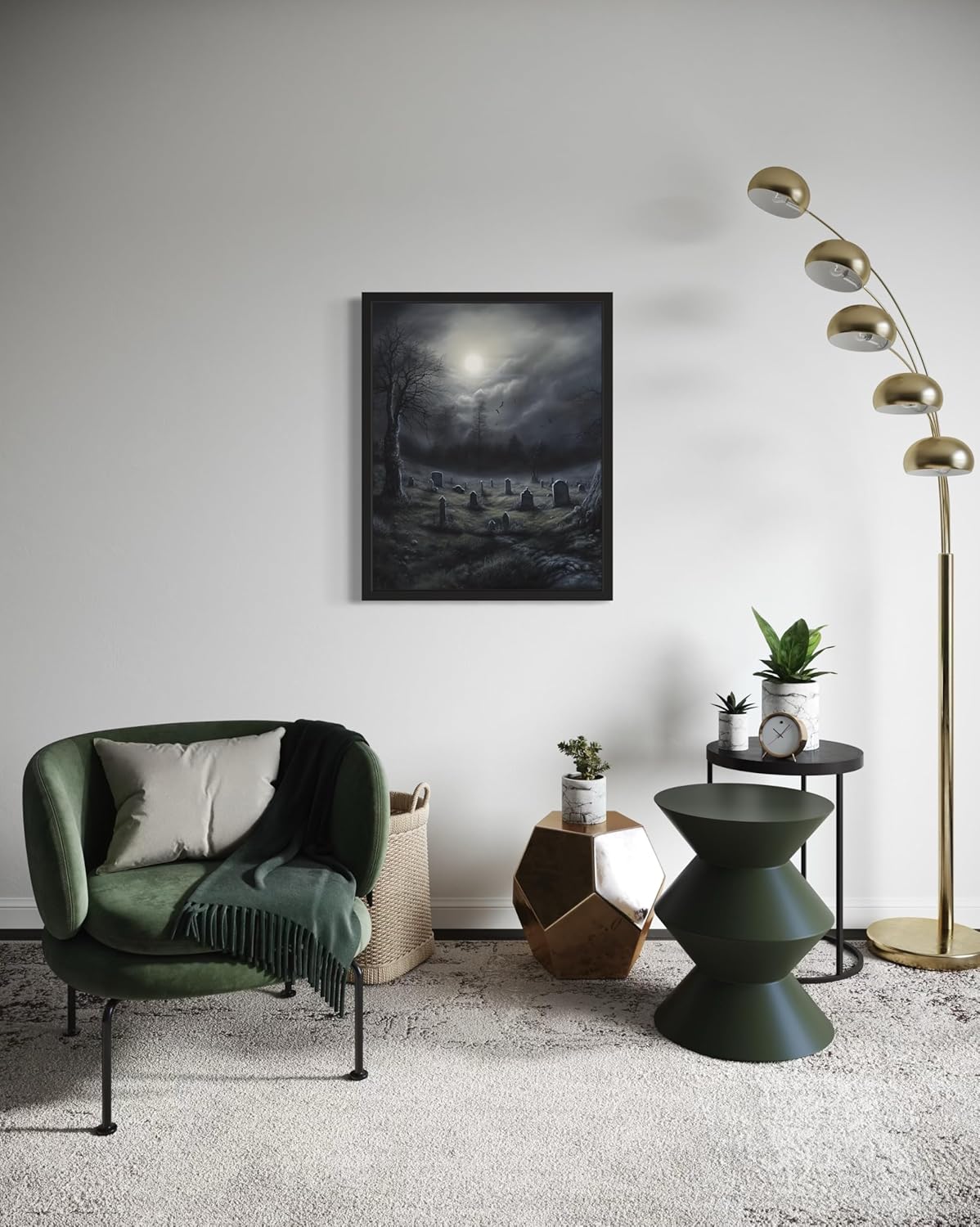 Gothic Graveyard Poster Art Print, Halloween Scary Vintage Wall Art Academia Spooky Painting Decoration for Horror Prints, Posters Bedroom Decor 89 (Gothic Graveyard, 16 x 20 inches, Black Frame)