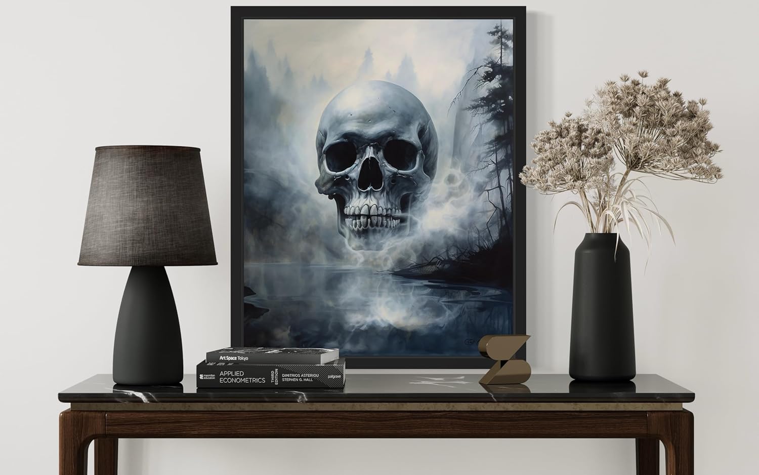 Foggy Skull Poster Art Print, Halloween Scary Vintage Wall Art Academia Spooky Painting Decoration for Horror Prints, Gothic Posters Bedroom Decor 89 (Foggy Skull, 8 x 10 inches, Black Frame)