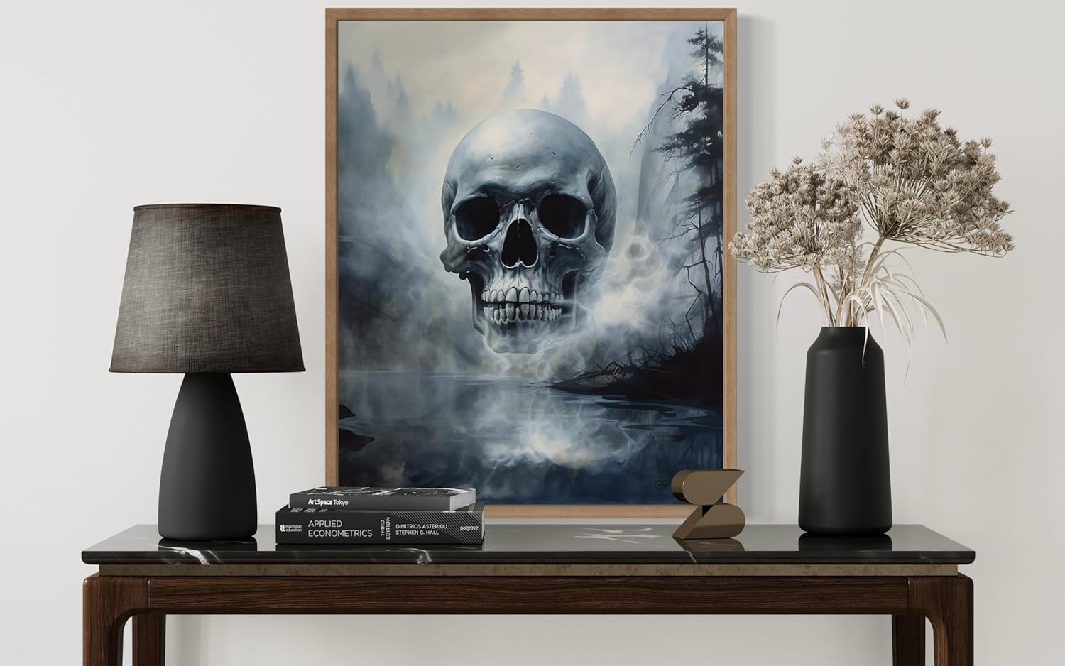 Foggy Skull Poster Art Print, Halloween Scary Vintage Wall Art Academia Spooky Painting Decoration for Horror Prints, Gothic Posters Bedroom Decor 89 (Foggy Skull, 11 x 14 inches, Wood Frame)