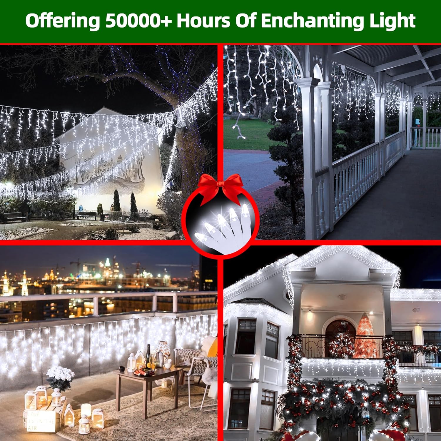 - Stunning Icicle Design for a Winter Wonderland: With 136 elegant drops and 612 LEDs, these icicle lights create a breathtaking cascade of light, perfect for mimicking the beauty of real icicles. Transform your home, garden, or event space into a magical winter scene.