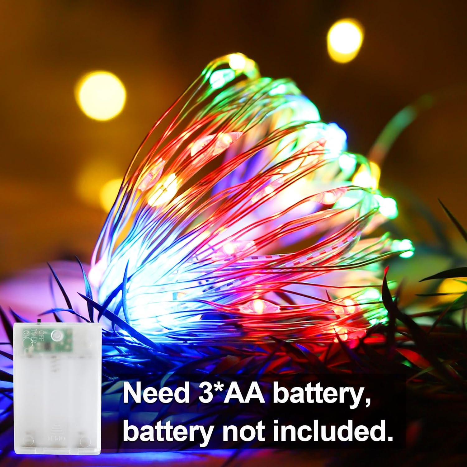 Christmas Decorations Multicolor Fairy String Lights, Battery Operated with Timer, 2 Pack Total 33FT 100 Led Mini Battery Powered Twinkle Mason Jar Waterproof Firefly Lights DIY Party