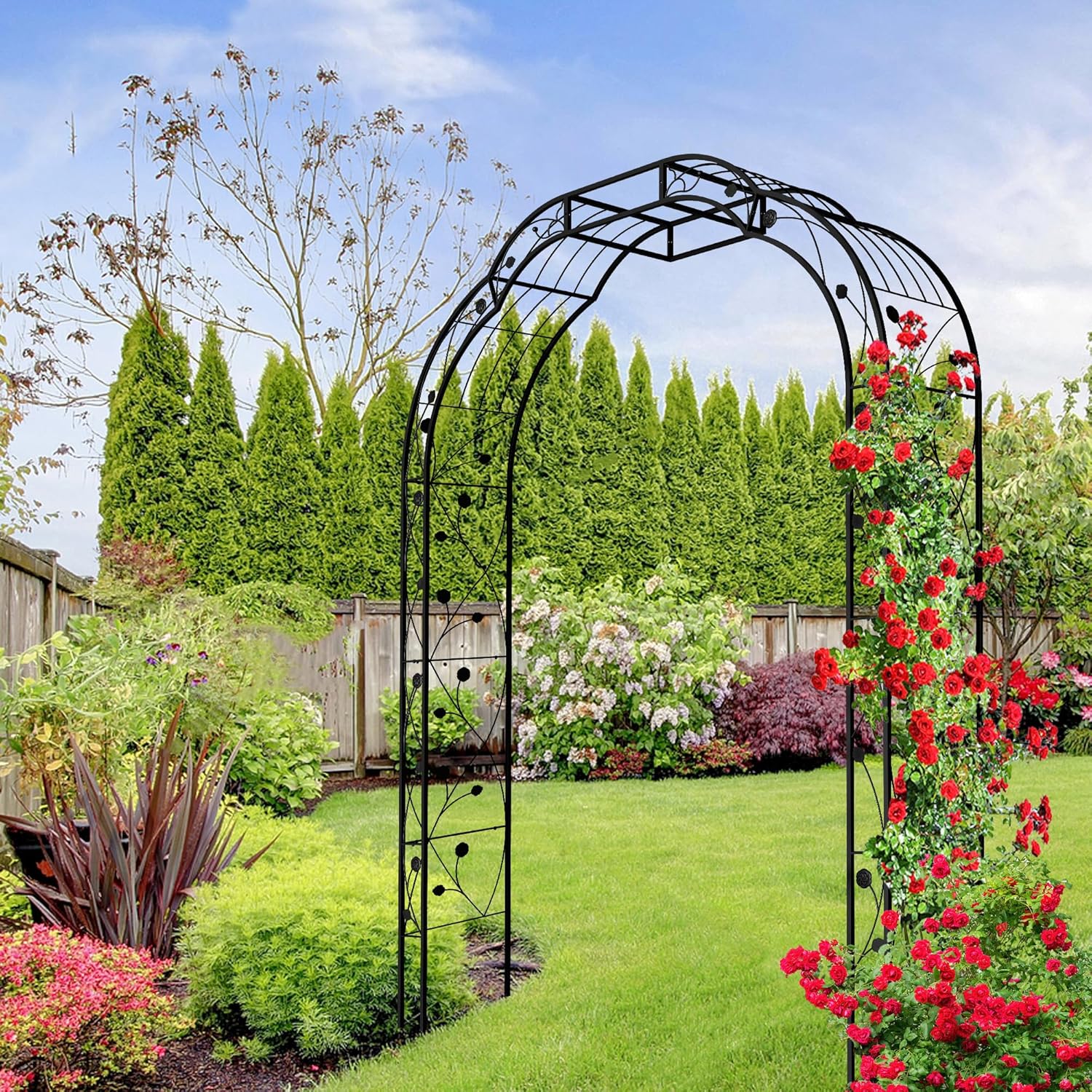 - Elegant Garden Arch: The perfect combination of metal hardness and floral decoration, whether blooming or withering, this arbor trellis will be a beautiful scenery in your garden.