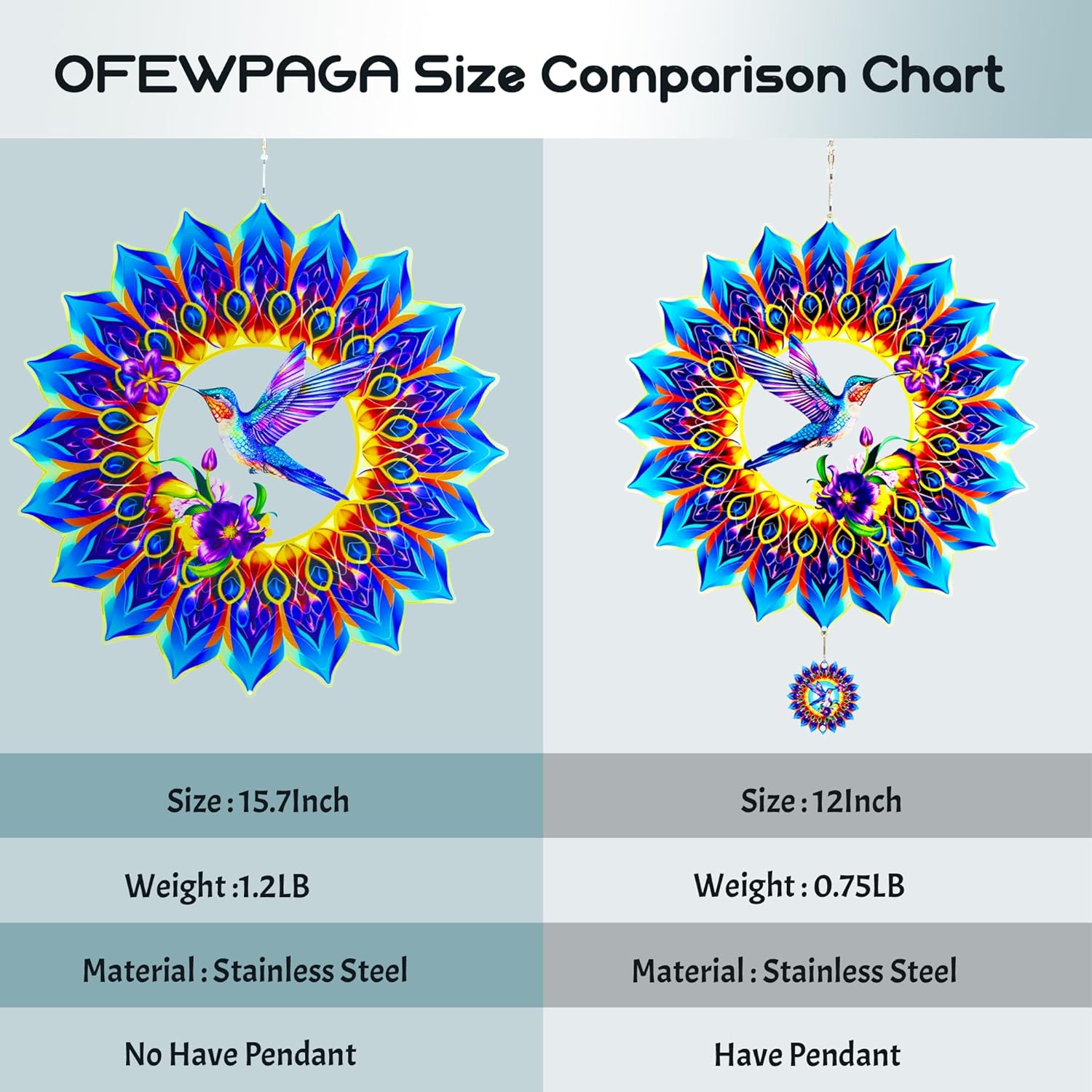 - 【Product Introduction】: This upgraded 15.7 x 15.7 inch 3D wind spinner offers a larger, more eye-catching design than our classic 12-inch model. Made of high-quality stainless steel with precision cutting and advanced PUV printing, it features a vivid 3D hummingbird shape that adds dynamic charm to any outdoor space.