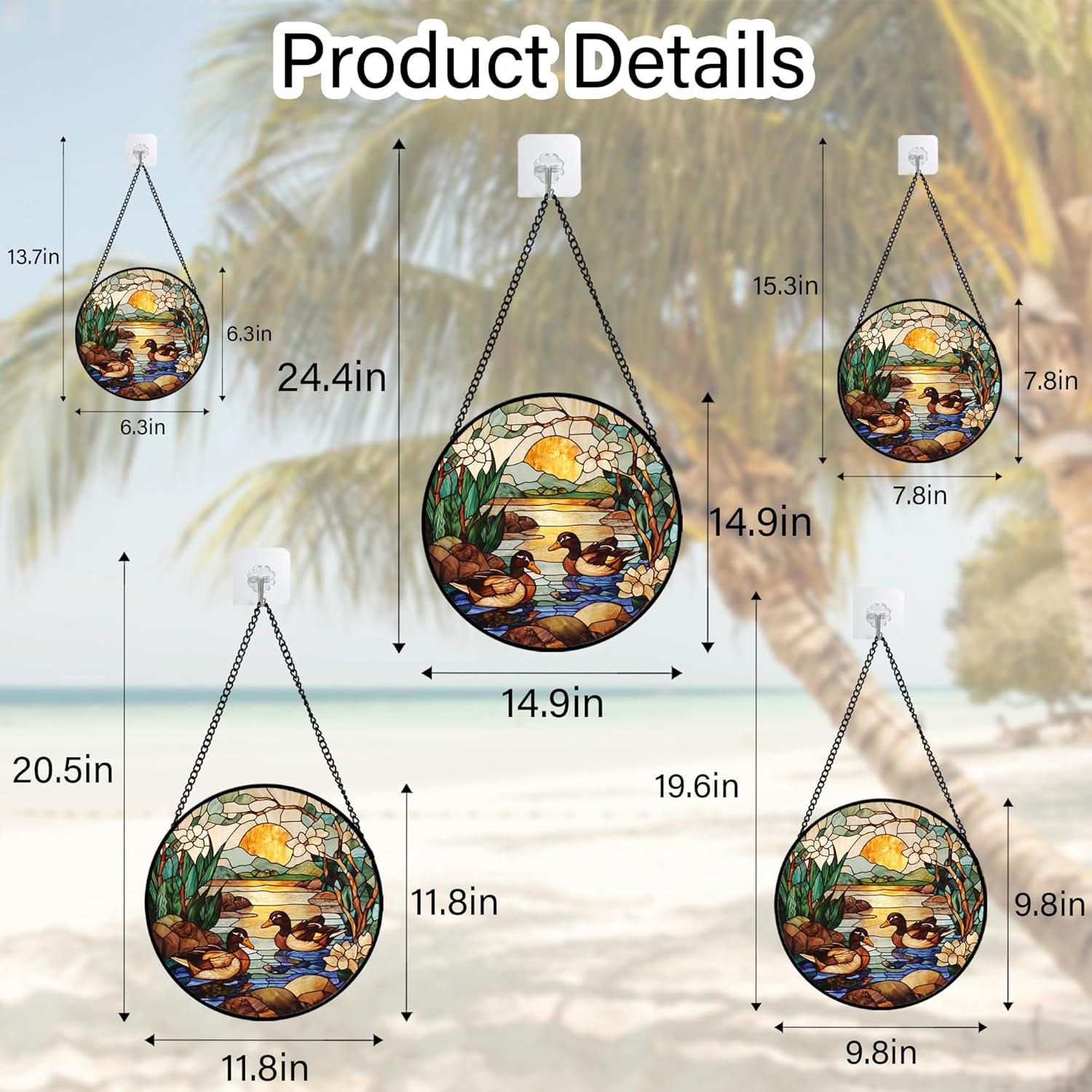 Stained Glass Window Hanging, Ducks in The Pond Sun Catcher for Door Home Decor Landscape Plant Suncatcher Christmas Mother's Day Birthday Gifts for Women Men Mom Nana 15 in