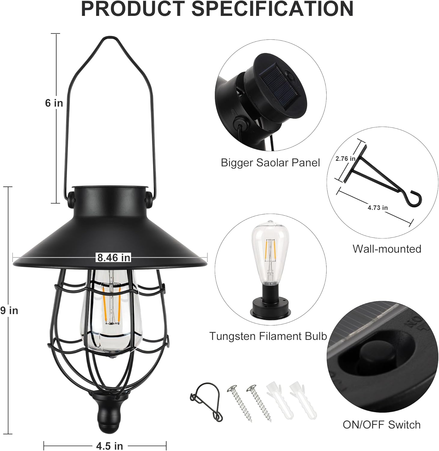 - Solar Wall Light: Designed in traditional vintage style, it perfectly combines classic hanging lanterns with LED bulbs. When night falls, the warm light shines, creating a cozy, warm and relaxing atmosphere for you