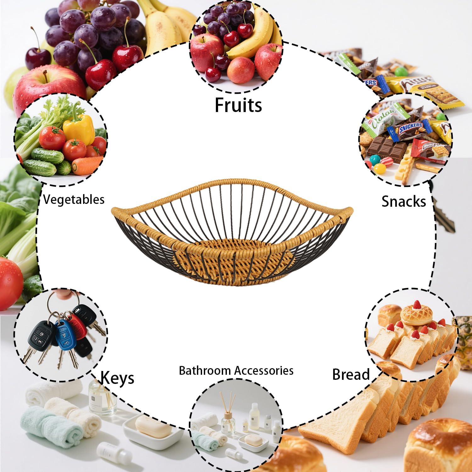 - Versatile Storage Solution - This metal wire fruit basket serves multiple purposes as a fruit bowl, vegetable drain basket, and storage for snacks and candy.The fruit basket fruit bowlsblack fruit bowl is ideal for kitchen countertop organization, living room use, and bathroom storage, it meets all your needs in one stylish piece. Elevate your home decor with this functional and decorative fruit storage solution today.