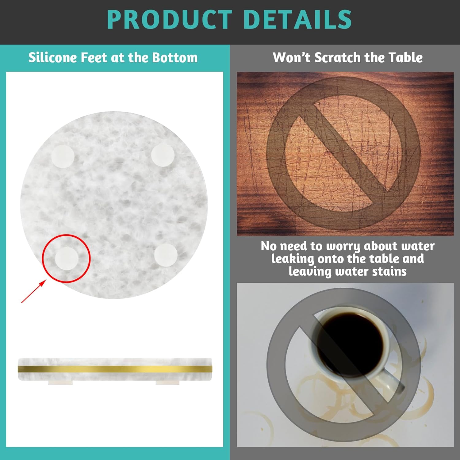 - [ Elegant Home Decor ]: Each coaster is accented with a golden brass ring, adding a touch of luxury and making it stand out from typical marble coasters. This elegant set will elevate the style of any space.