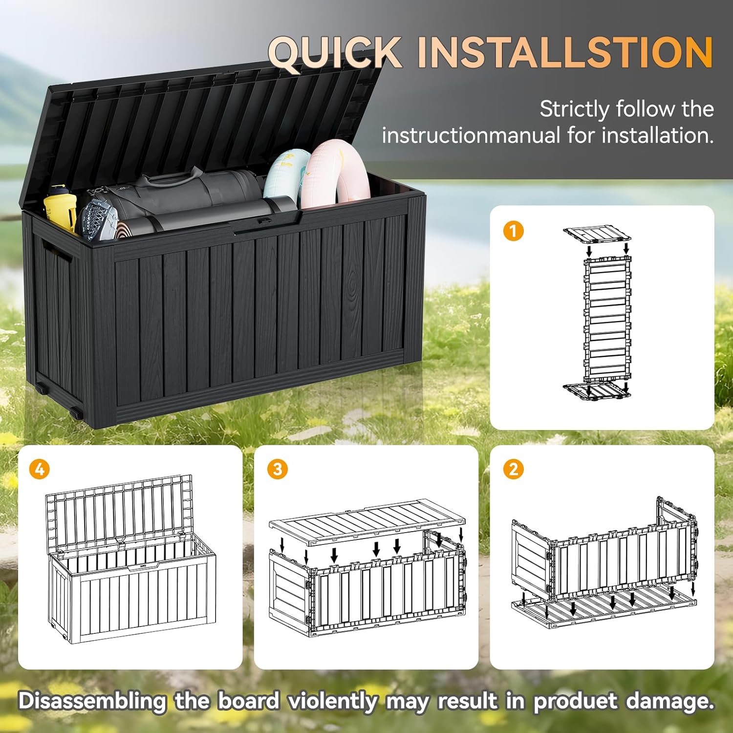 - Deck Boxes Outdoor Waterproof: Designed as a waterproof storage solution, this deck box protects your belongings from moisture and ensures they stay dry even during heavy rain. The lockable lid adds an extra layer of security, keeping your valuables safe from theft or damage.
