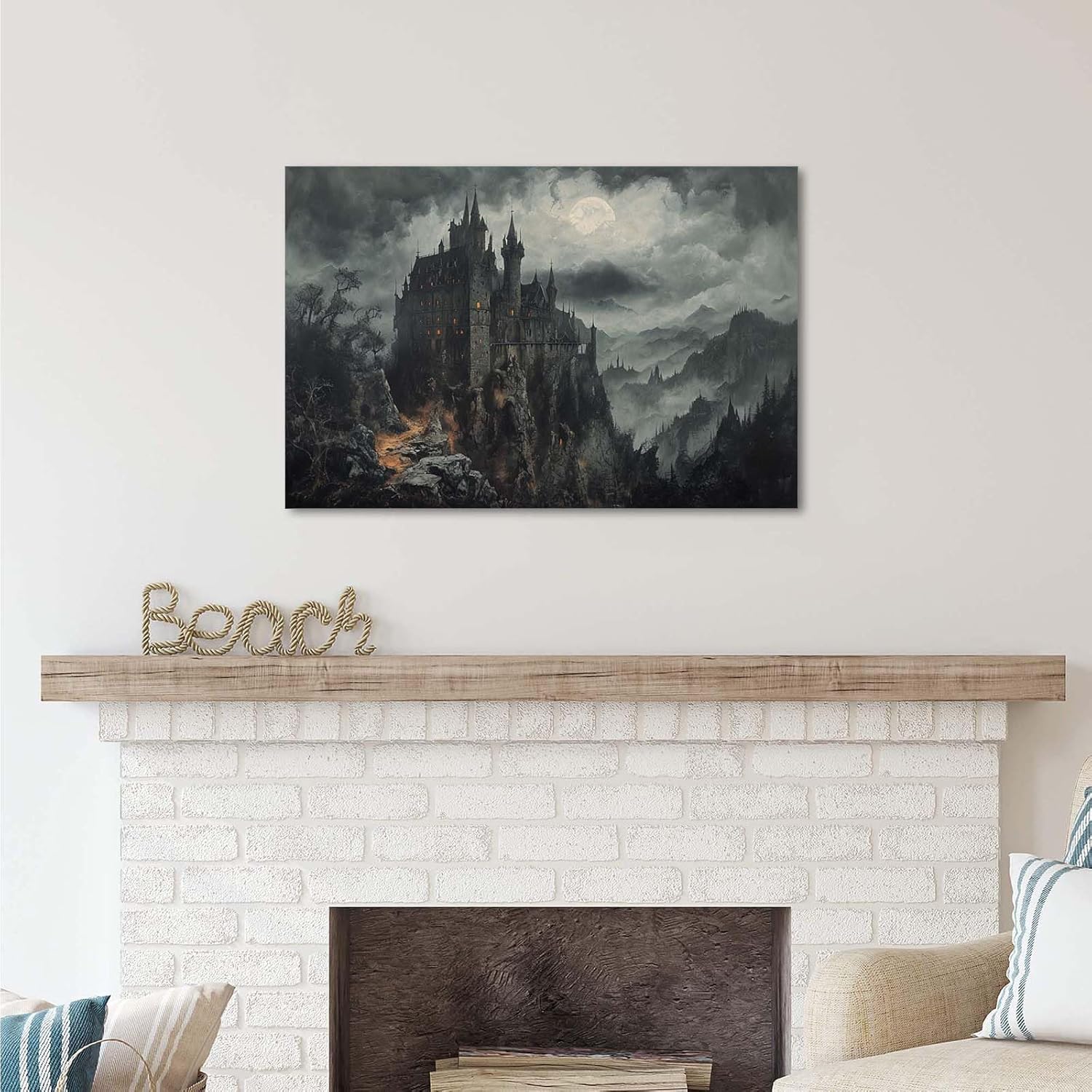 Vintage Castle Poster Dark Academy Victorian Gothic Castle Wall Art Poster Moody Mystical Art Print Suitable for Home Living Room Bedroom24x36in Wood Framed