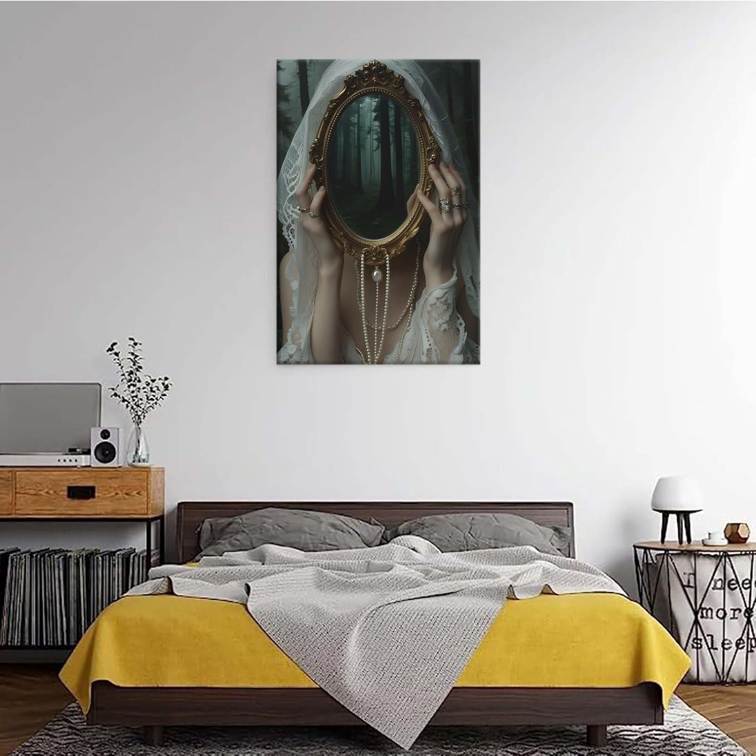 Mirror face covering dark art poster print melancholy gothic painting vintage feminine print victorian style decoration antique art16x24in Frameless