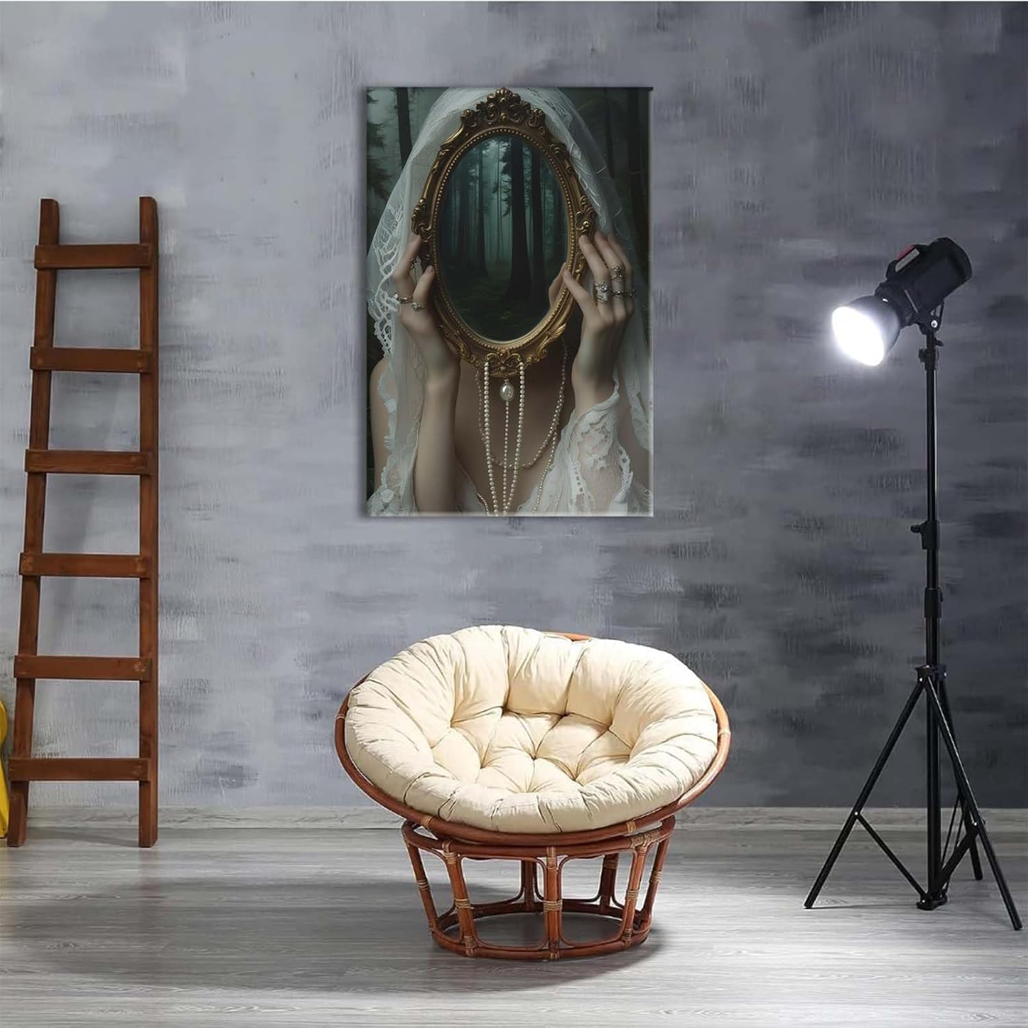 Mirror face covering dark art poster print melancholy gothic painting vintage feminine print victorian style decoration antique art8x12in Frameless
