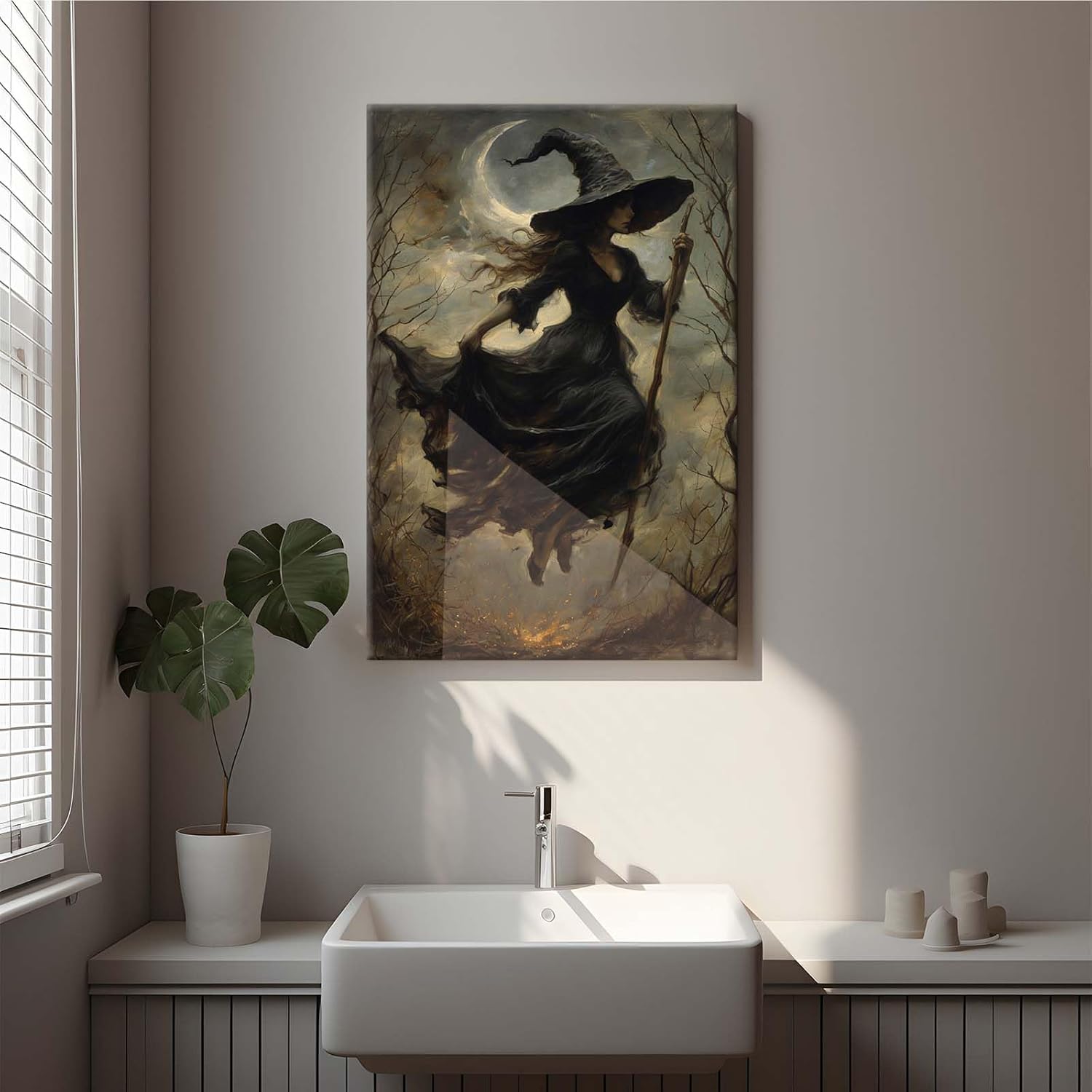 JFHCQJPK Witch in the Forest Halloween Print Wall Art Poster Witch Decor Vintage Print Dark College Wall Art Victorian Gothic Room Decor Canvas Wall Print20x30in Frameless