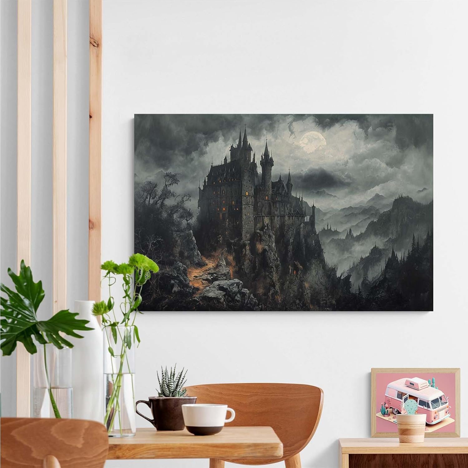 Vintage Castle Poster Dark Academy Victorian Gothic Castle Wall Art Poster Moody Mystical Art Print Suitable for Home Living Room Bedroom12x16in Wood Framed