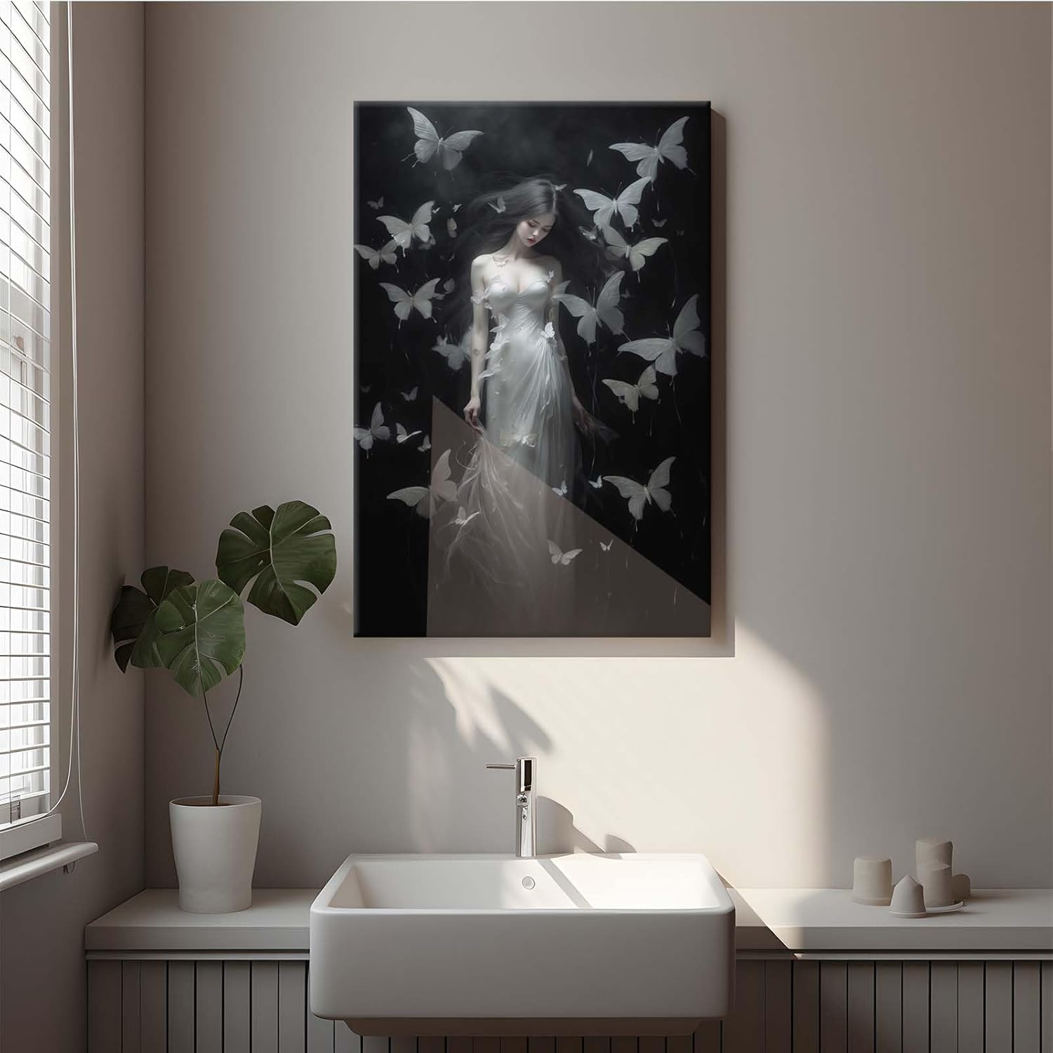 Vintage Gothic Feminine Canvas Wall Art Print Butterfly Poster Moody Female Wall Art Retro Artwork Dark College Decor for Home Bedroom28x40in Wood Framed