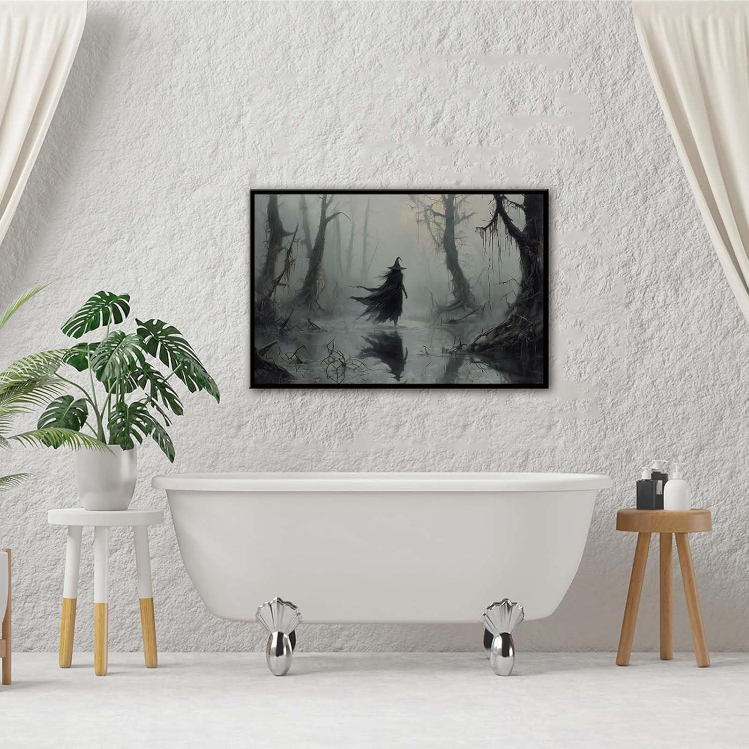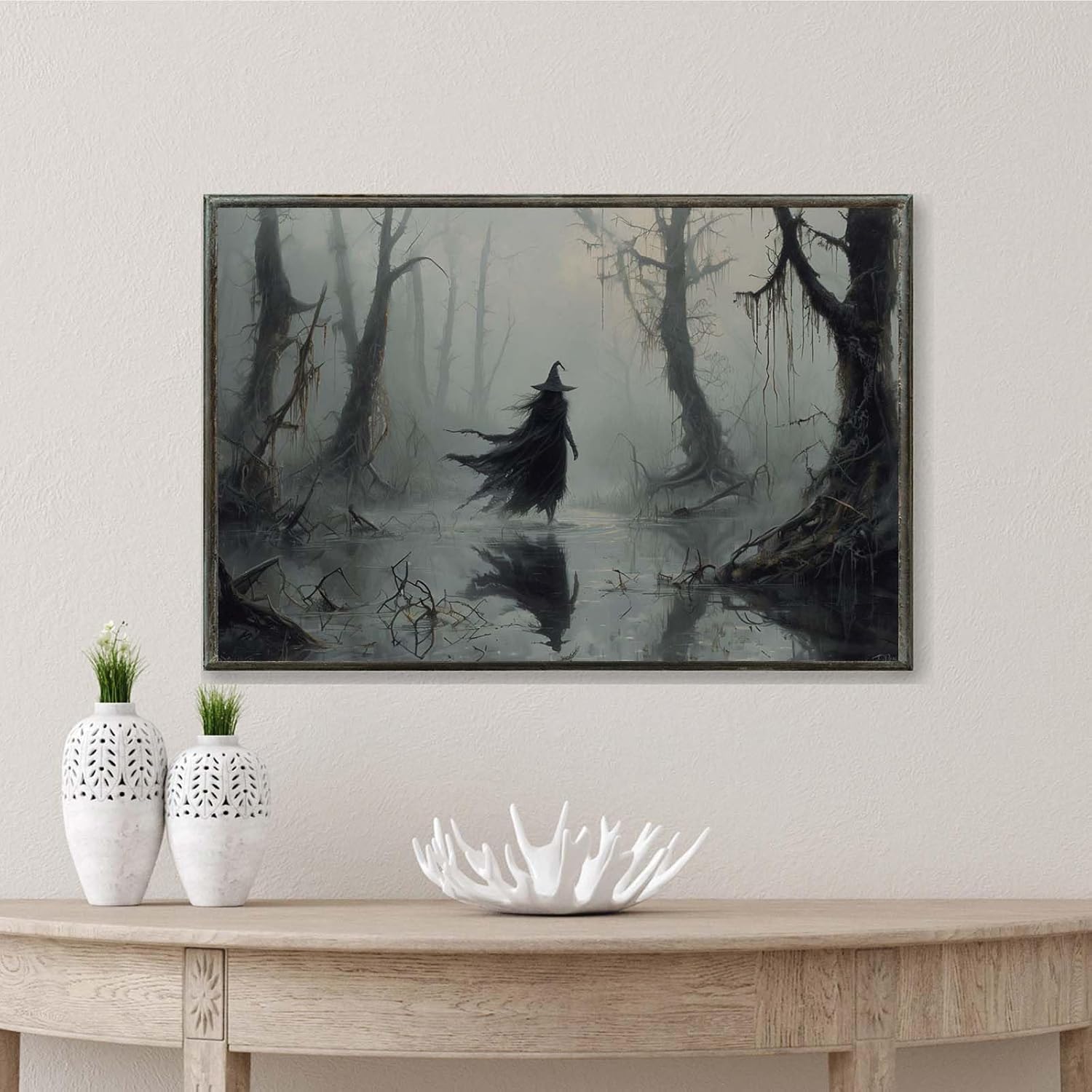 JFHCQJPK Vintage rustic swamp witch poster dark moody wall art gothic horror season halloween print for home decor retro dark moody painting12x16in Metal blackFramed