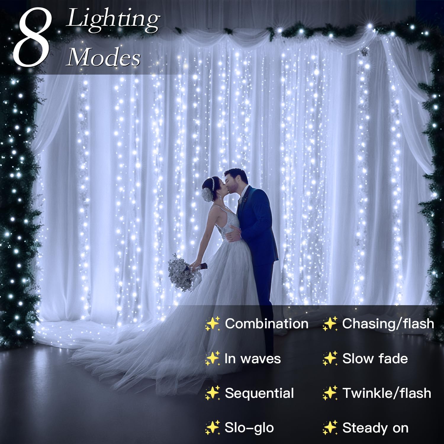 300 LED Curtain String Lights 9.8FT Plug in Fairy Lights with Timer and 8 Modes, Waterproof Window Wall Lights for Bedroom Wedding Party Indoor Outdoor Christmas Decor