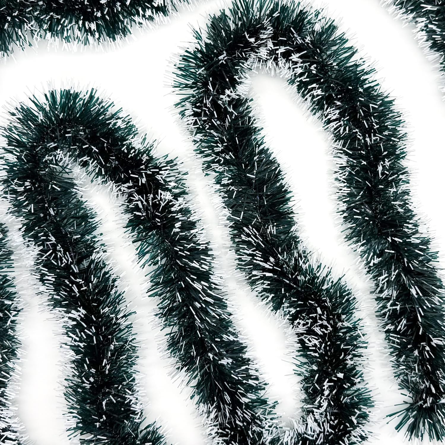 - 【Package Includes】1 piece 50ft/15m long Christmas tinsel garland. The rattan is about 3.54 inches wide,soft and fluffy,can be cut,bent and fixed at will,it is a great Christmas decoration.