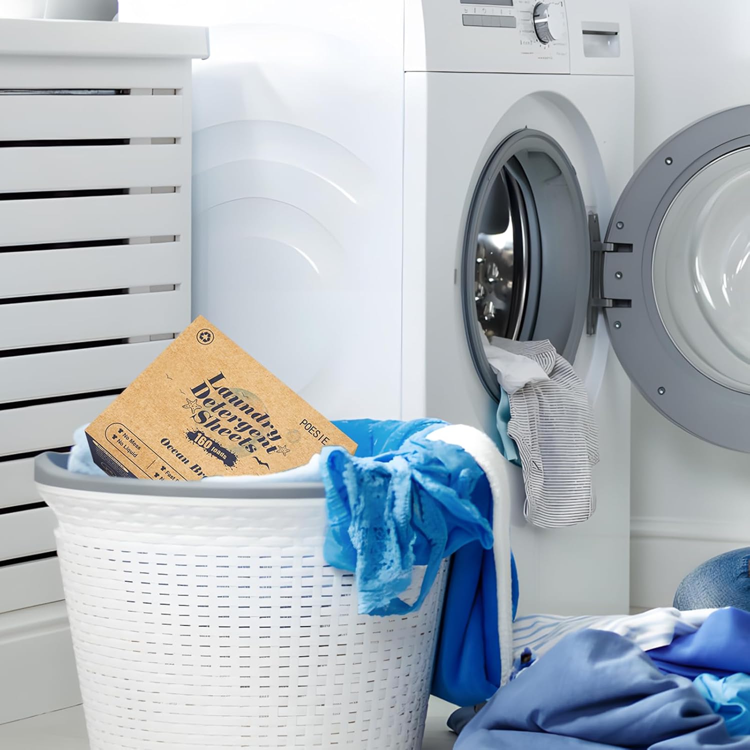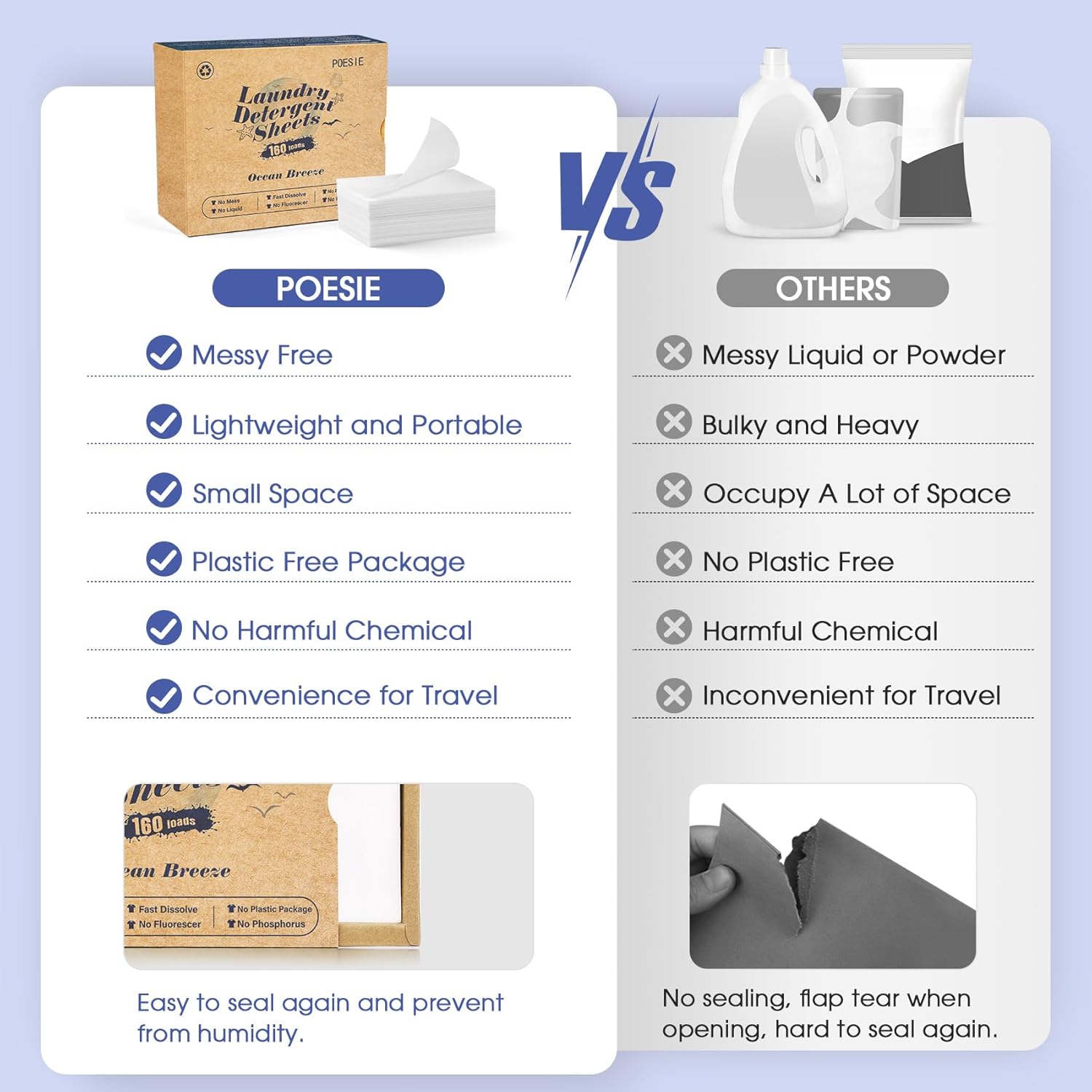 Poesie Laundry Detergent Sheet Ocean Breeze Scent 160 Loads Portable Non-Plastic Drawer Box Travel-Friendly Liquidless Portable No Mess Laundry Soap Strips for Home Dorm RV Outdoor Trip