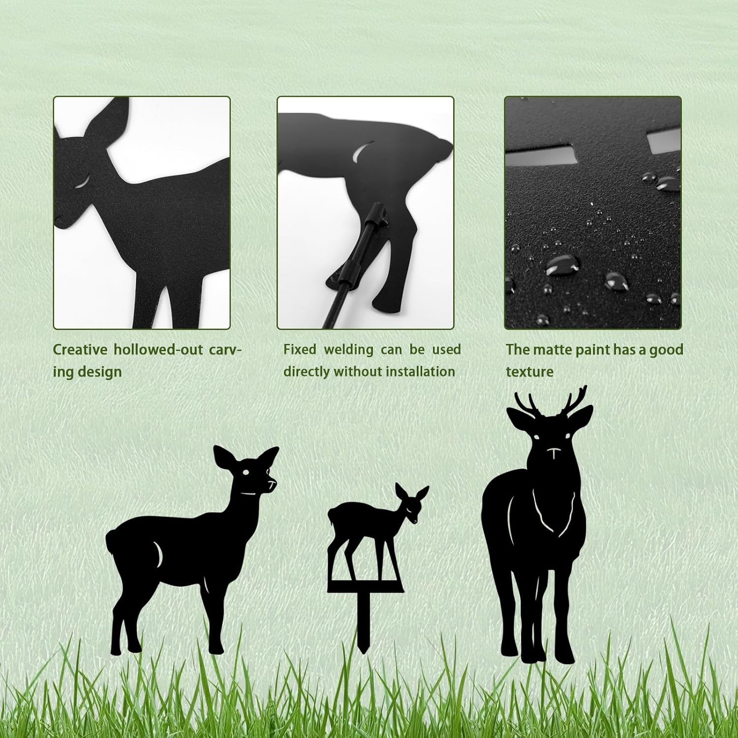 3 Pack Deer Metal Garden Decorative Stakes, Weather Proof Silhouette Statues for Yard, Patio,Outdoor Decor for Deer Lovers and Pet Owners