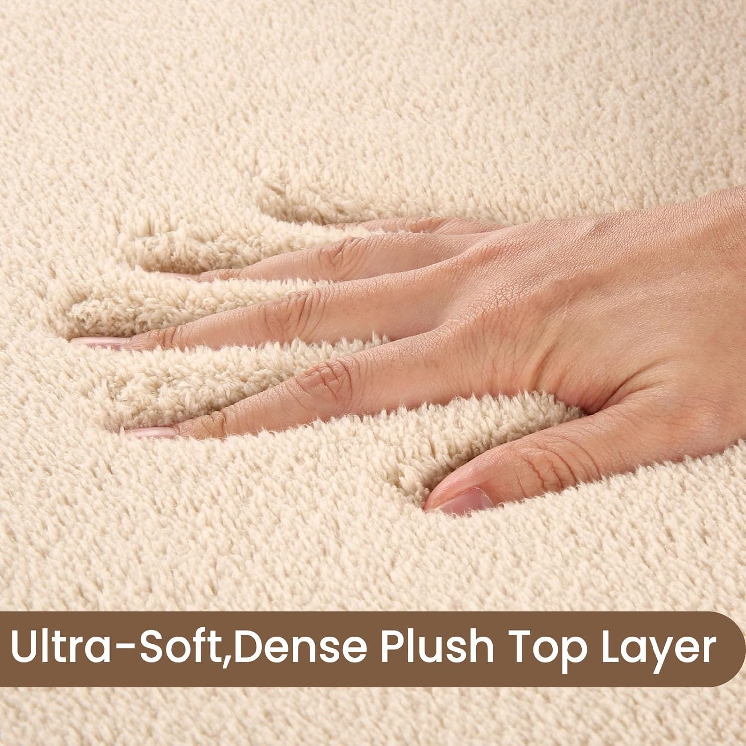 - 【SUPER SOFT FEELING】- The Area Rugs for Living is made of premium short wool coral fleece, The surface is dense and soft, luxurious, skin-friendly,Middle is high resilience sponge can reduce pressure on you feet and enhance the softness.you can freely lie on it to relax or play games with the family.