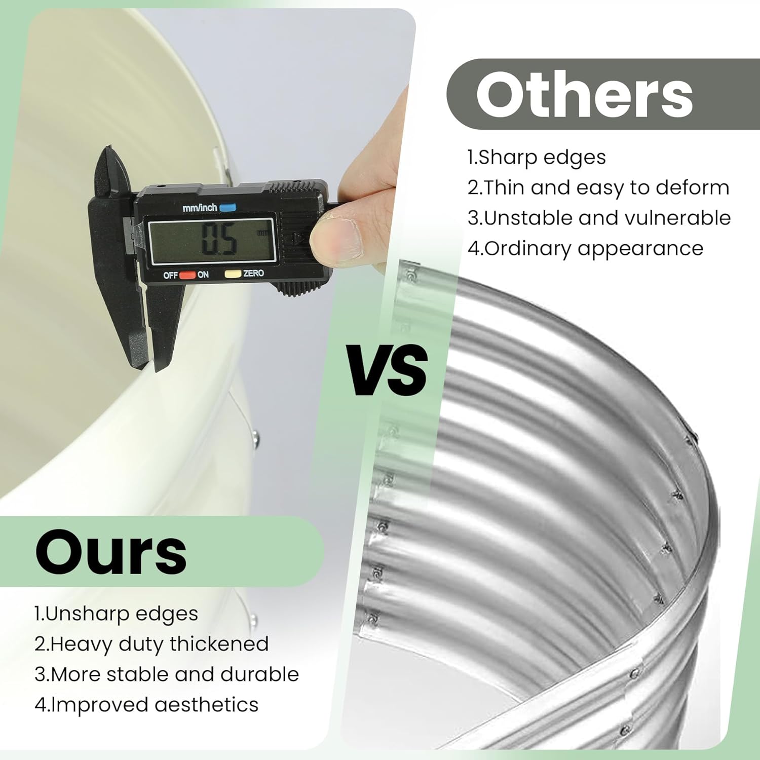 - 🌳 Unmatched Stability: Crafted with 0.5mm thick overlapping galvanized panels, reaching up to 1.8mm at the seams, our raised garden bed provides excellent strength and stability. The integrated screw fastening edge and unique oval form ensure it remains solid and secure, even when fully planted.