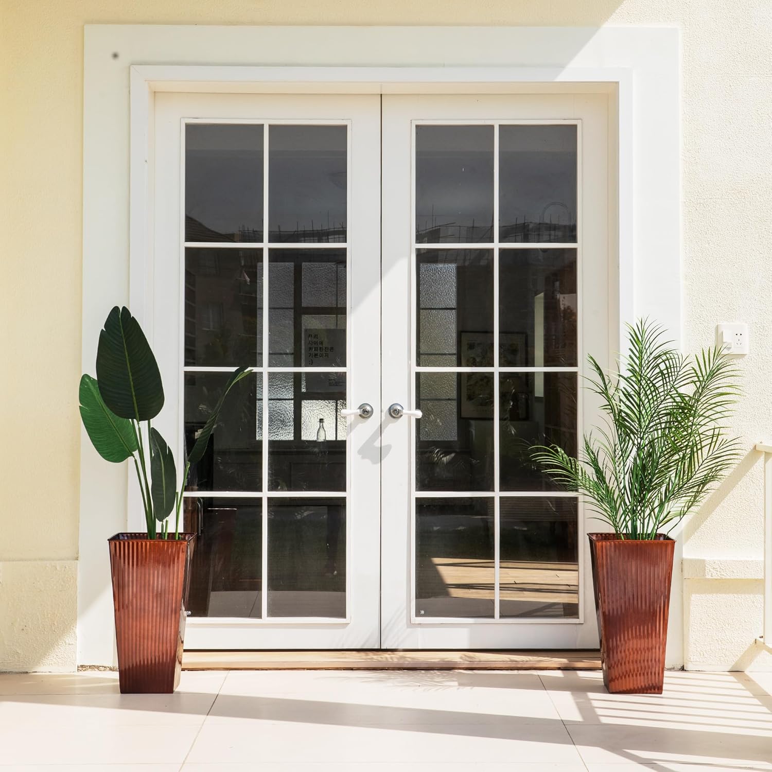 22in Vintage Handmade Metal Vertical Lines Copper Tapered Planters,Planter Box with Drainage Holes and Saucer -Set of 2, Galvanized Steel Planter for Indoor/Outdoor/Porch/Garden