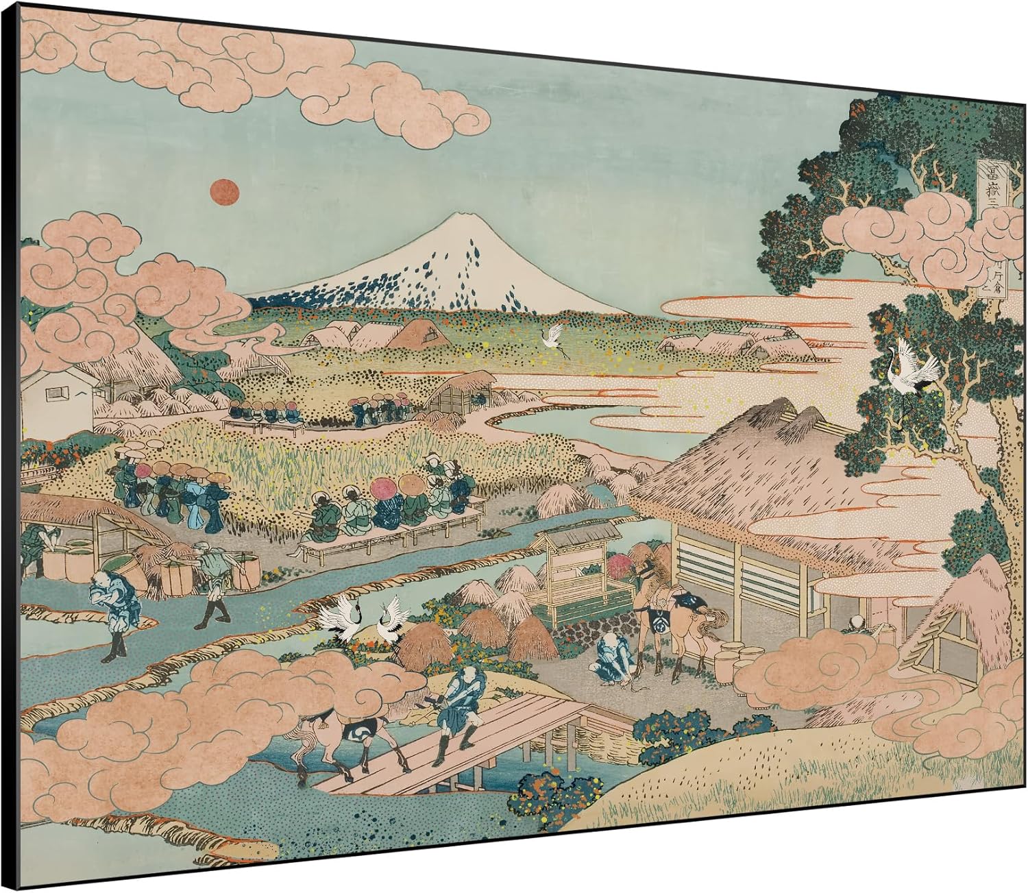 SIGNWIN 36"x46" Extra Large Framed Wall Art Japanese Ukiyo-e Landscape, Timeless Mt. Fuji Scene for Zen-Inspired or Asian-Style Interiors for Home Living Room Bedroom Decor (Frame Assembly Required)