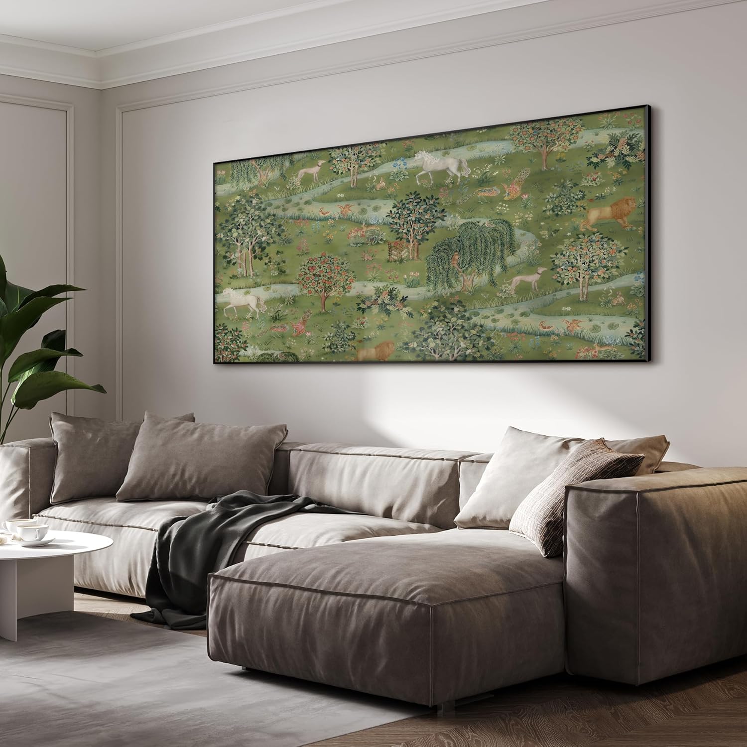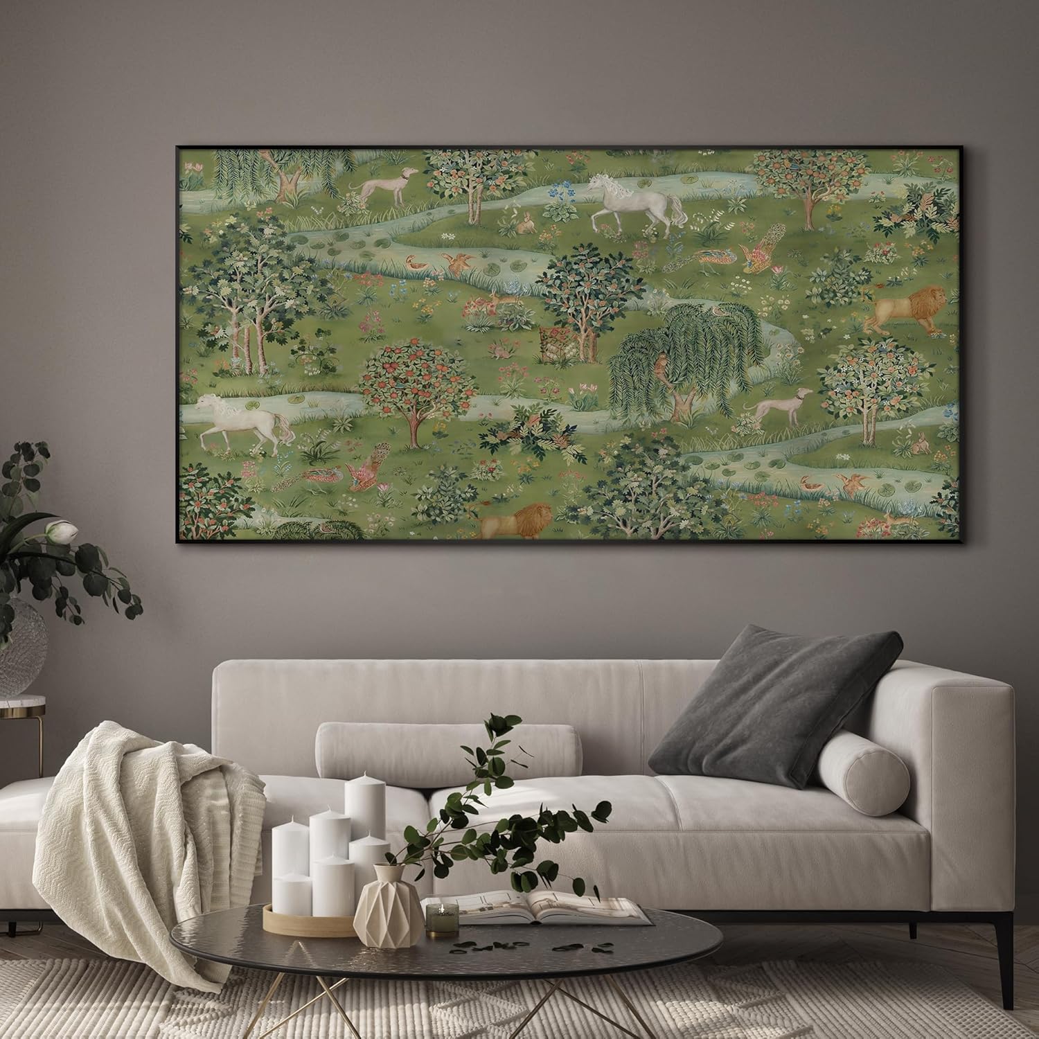 SIGNWIN 36"x72" Extra Large Framed Wall Art Medieval Fantasy Forest with Woodland Animals, Storybook-Inspired Scene for Home Living Room Bedroom Decor (Frame Assembly Required)