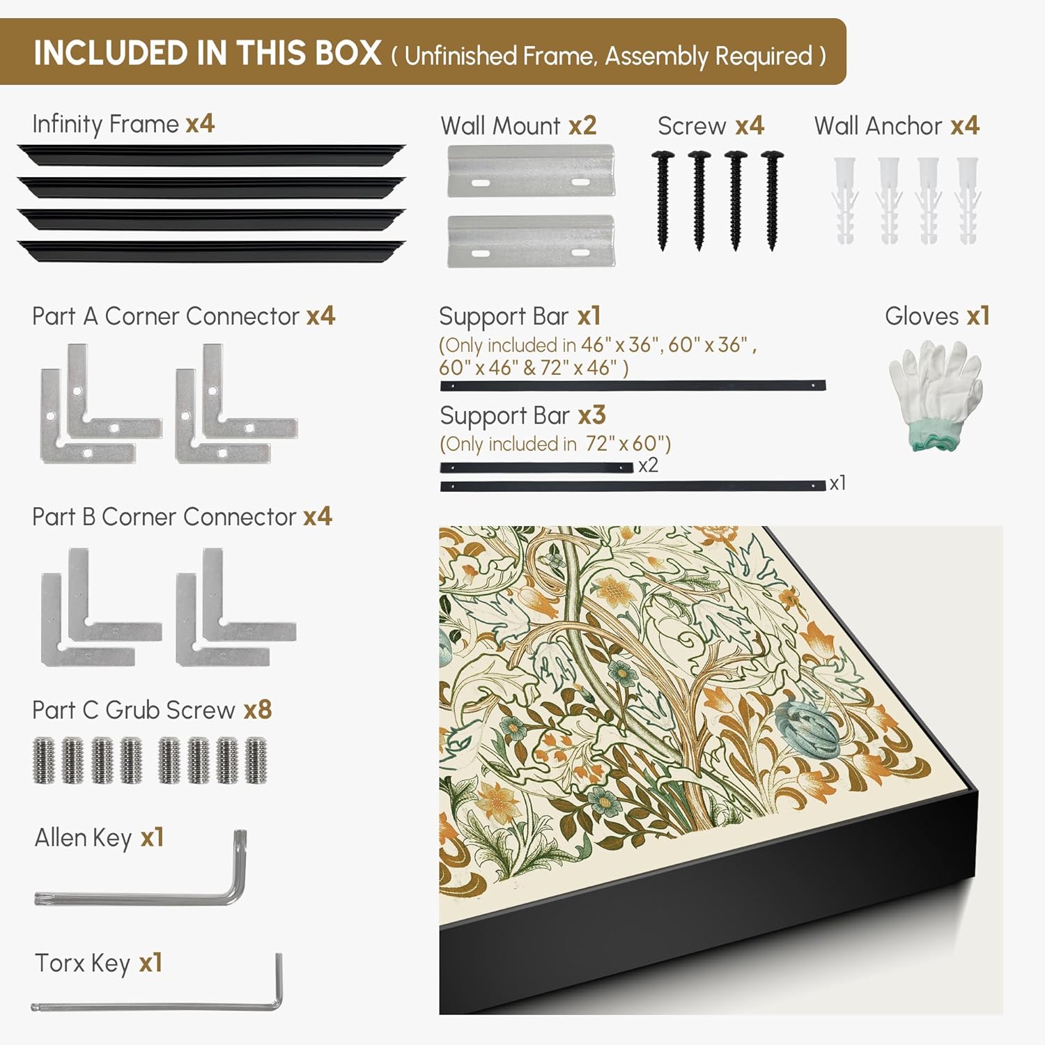 - Assembly Required: The artwork comes with the frame components unassembled. Don’t worry — setup is straightforward and tool-friendly. For best results and accurate alignment, we recommend two people to ensure a smooth assembly and a stable, secure wall mount.