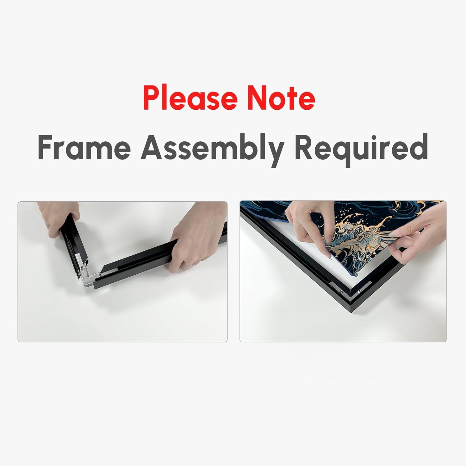 - Assembly Required: The artwork comes with the frame components unassembled. Don’t worry — setup is straightforward and tool-friendly. For best results and accurate alignment, we recommend two people to ensure a smooth assembly and a stable, secure wall mount.