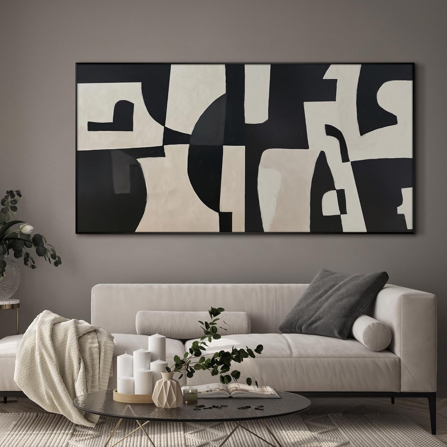 SIGNWIN 24"x46" Extra Large Framed Wall Art Black and White Abstract Geometric Design, Minimalist Modern Print for Home Living Room Bedroom Decor (Frame Assembly Required)