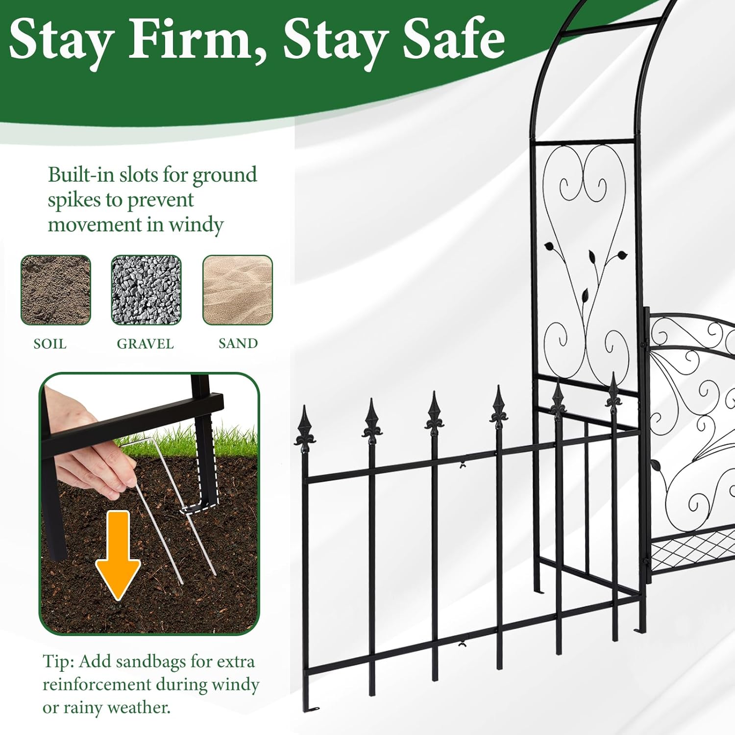 VINGLI Garden Arbor Arch, Wedding Arch Archway for Ceremony Party, Trellis for Plant Climbing, Christmas Decorations Pergola for Backyard, Lawn, Patio, Yard (Arbor with Gate and Fence)