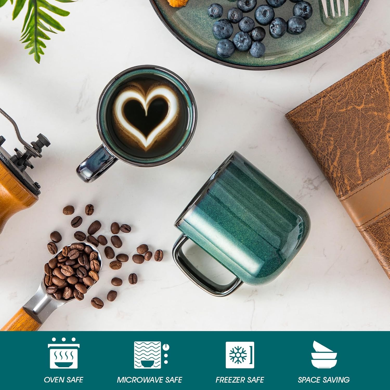 - 【Dishwasher-Safe & Durable】: Fired at 2372°F+ for a fully fused, non-porous glaze (vs. standard 1832°F), this coffee mugs set of 6 resists high-pressure water and heat. The low-absorption ceramic body (<0.3%) prevents detergent residue buildup, ensuring easy cleaning and long-lasting use.