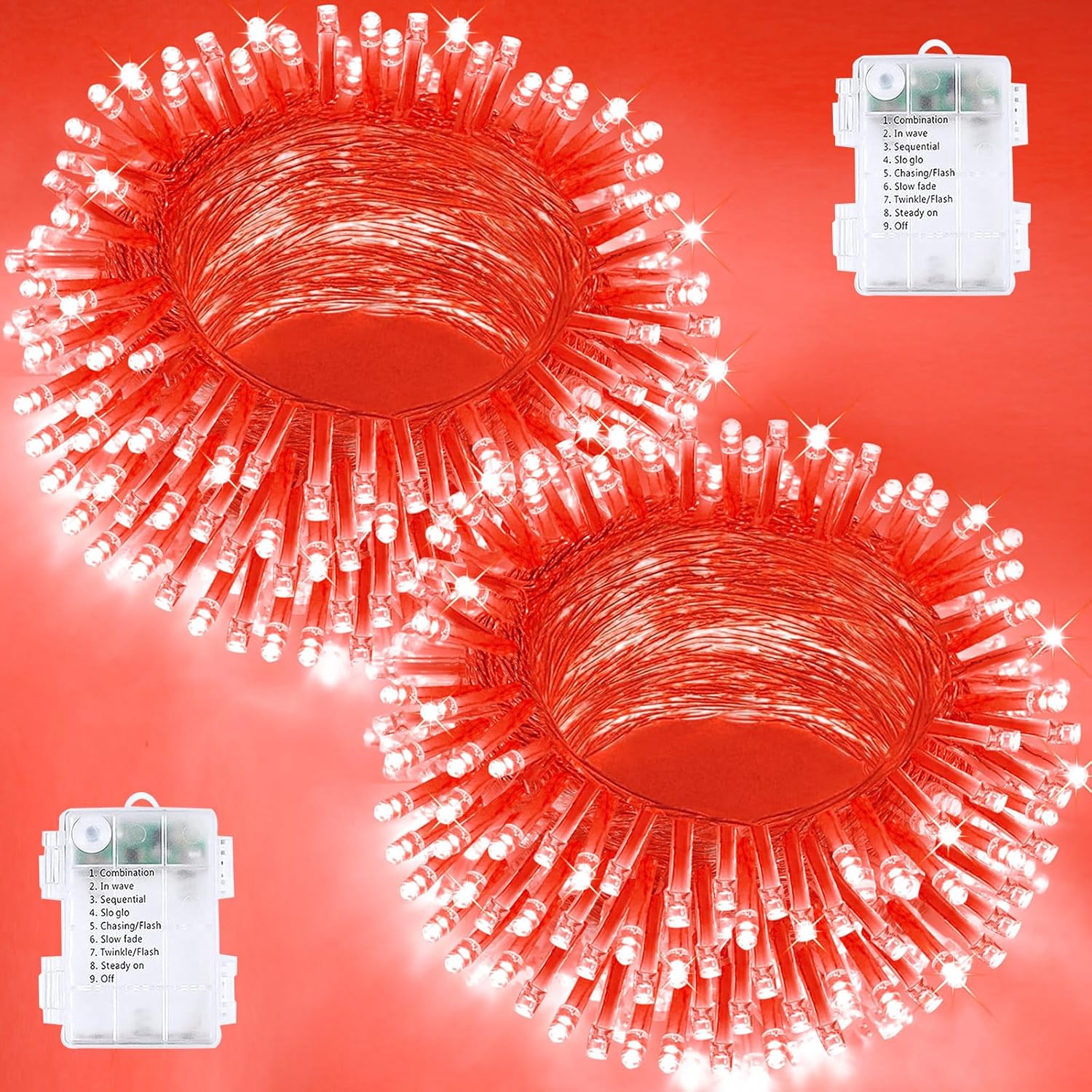 - Ultra-Bright and Durable Battery Powered String Lights: Each Christmas string light is 33 feet, features 100 super bright LEDs and a waterproof battery case with 8 lighting modes to ensure longevity and reliability. The red Halloween lights emit a classic, scary and dread atmosphere in the dark, making them an ideal choice for indoor and outdoor decorations. These fairy lights are perfect for Halloween parties, creating a horrible and spooky atmosphere.
