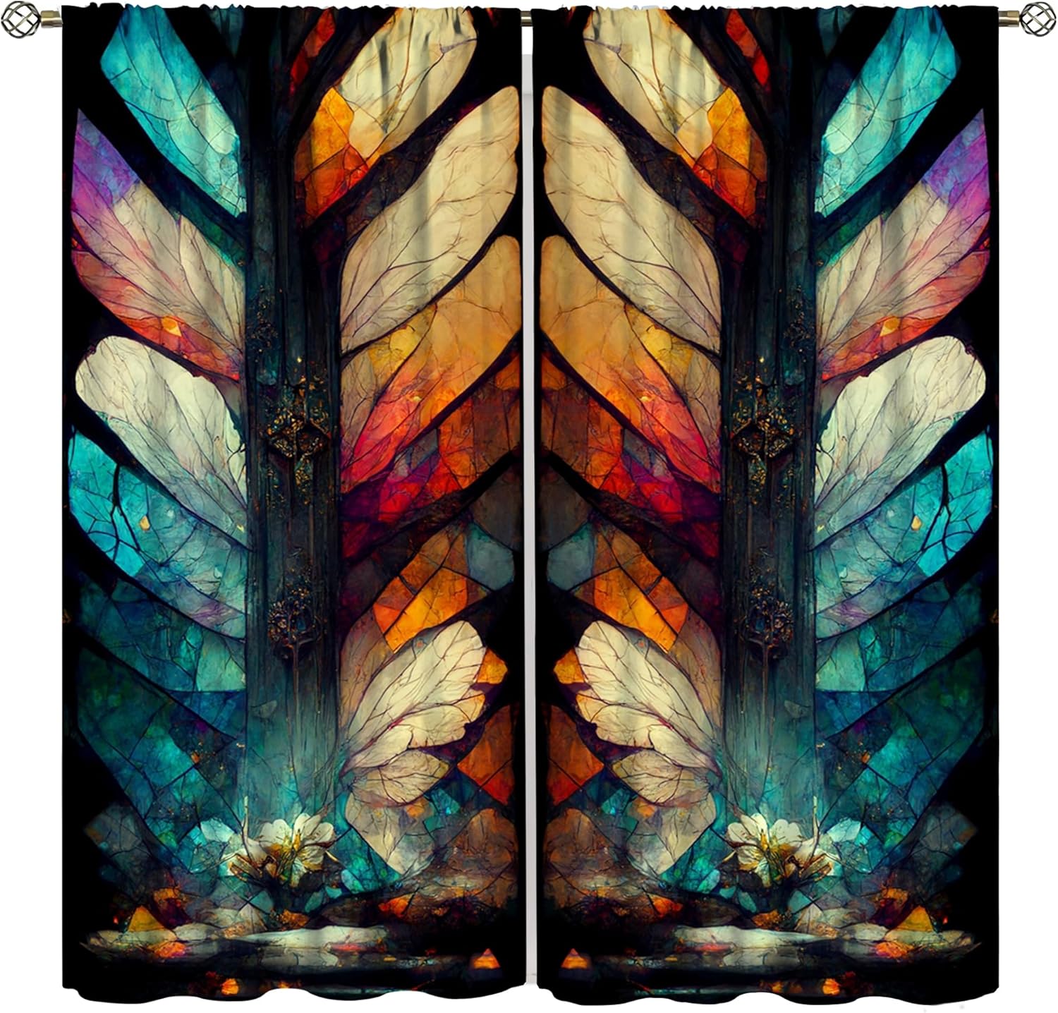 Stained Glass Curtains,Vintage Magical Colorful Abstract Art Home Decor Drapes for Bedroom Living Room Kitchen Window Treatment 2 Panels Set Total Size 42" W X 63" L Inch