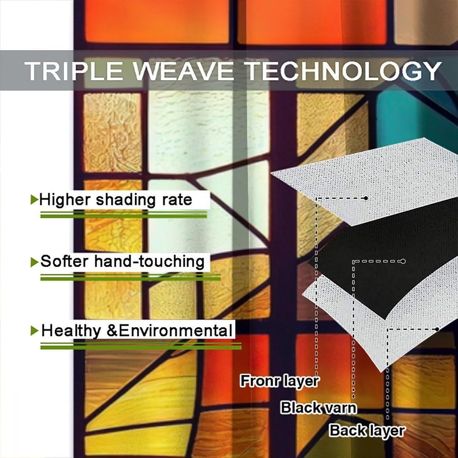 Stained Glass Curtains,Retro Abstract Colorful Geometry Textures Art Home Decor Drapes for Bedroom Living Room Kitchen Window Treatment 2 Panels Set Total Size 42" W X 63" L Inch