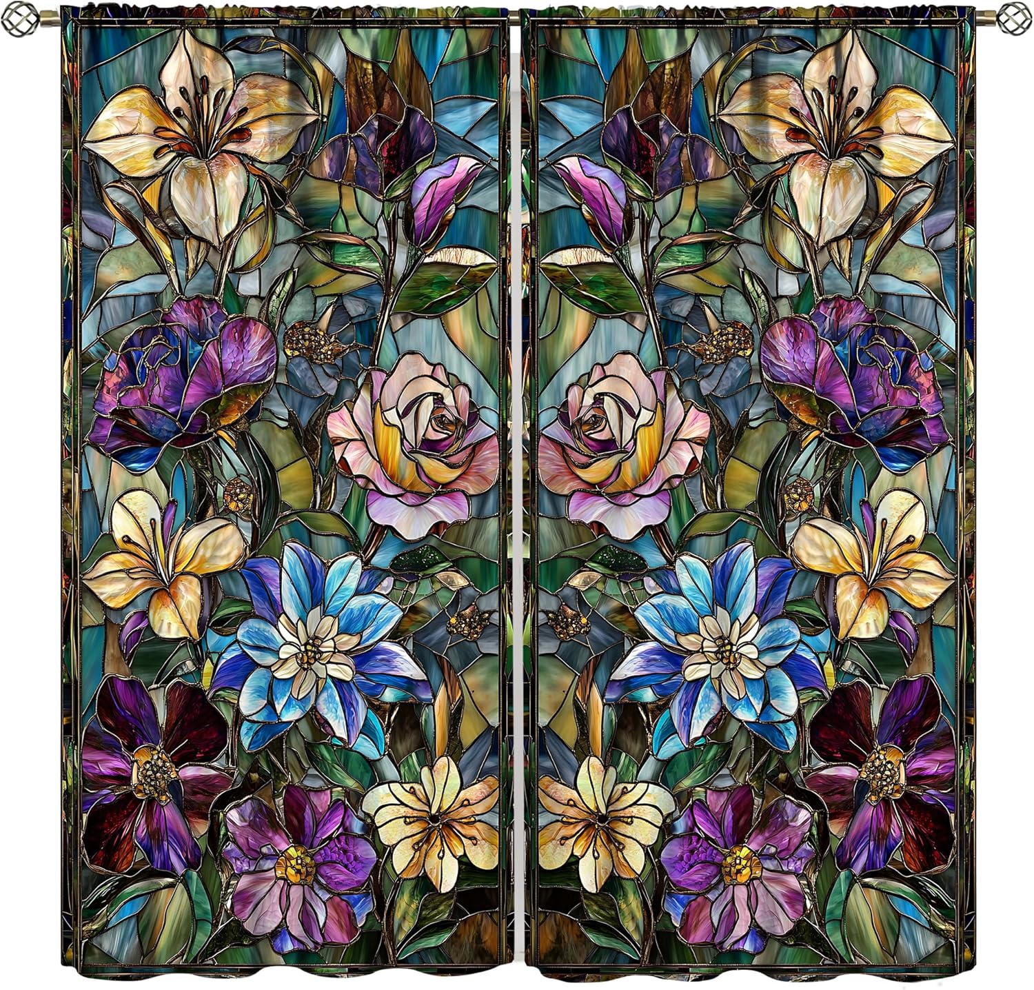 Stained Glass Curtains,Retro Colored Glass Flowers Art Home Decor Drapes for Bedroom Living Room Kitchen Window Treatment 2 Panels Set Total Size 42" W X 45" L Inch